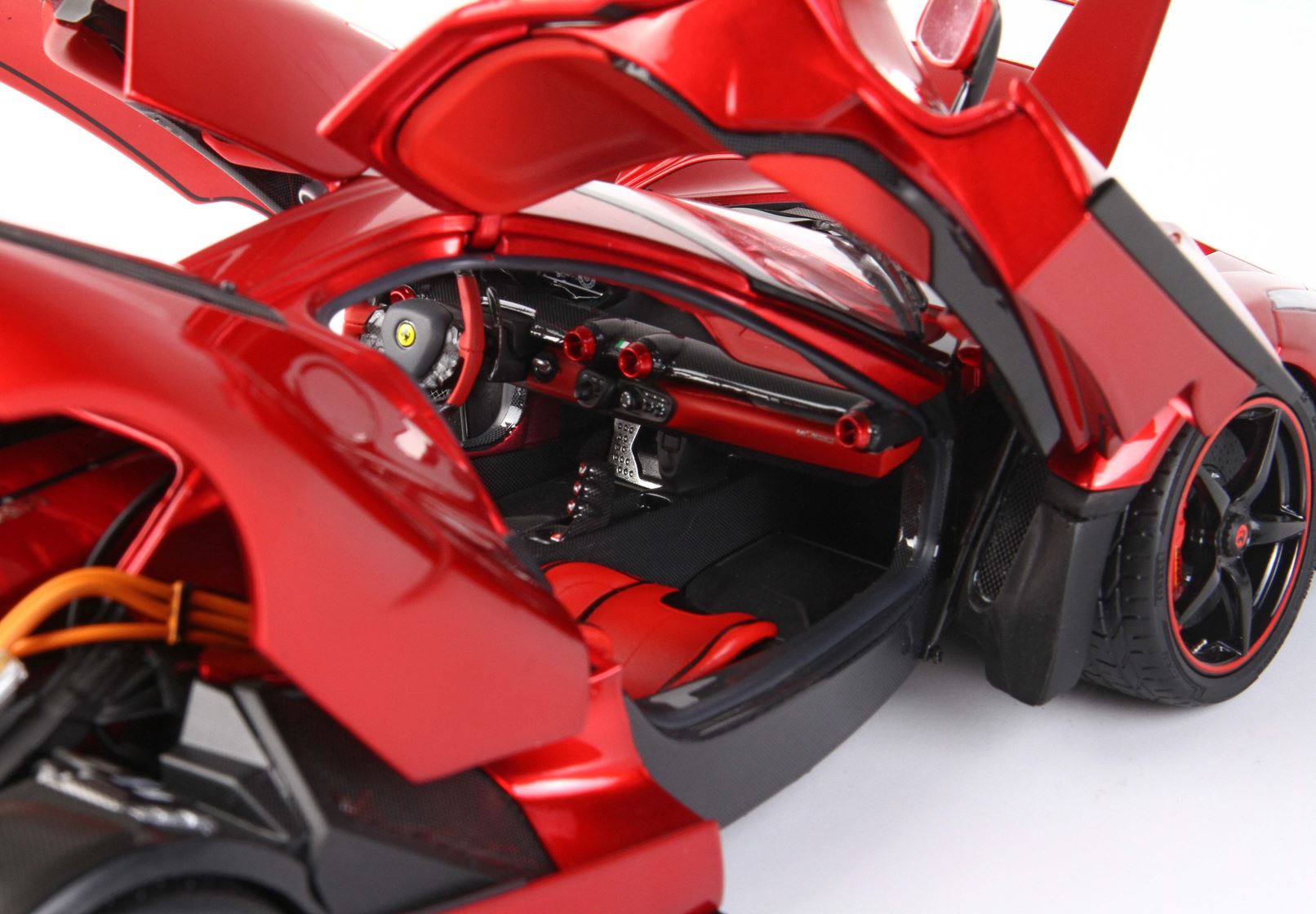 Colore rosso fuoco metallizzato, interno personalizzato carbonio e rosso.