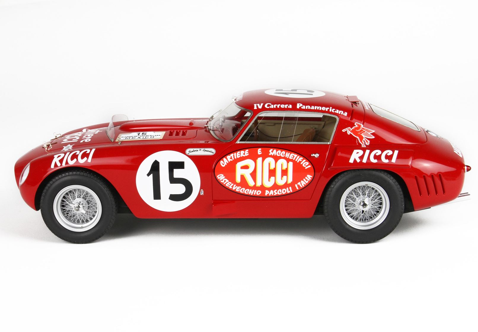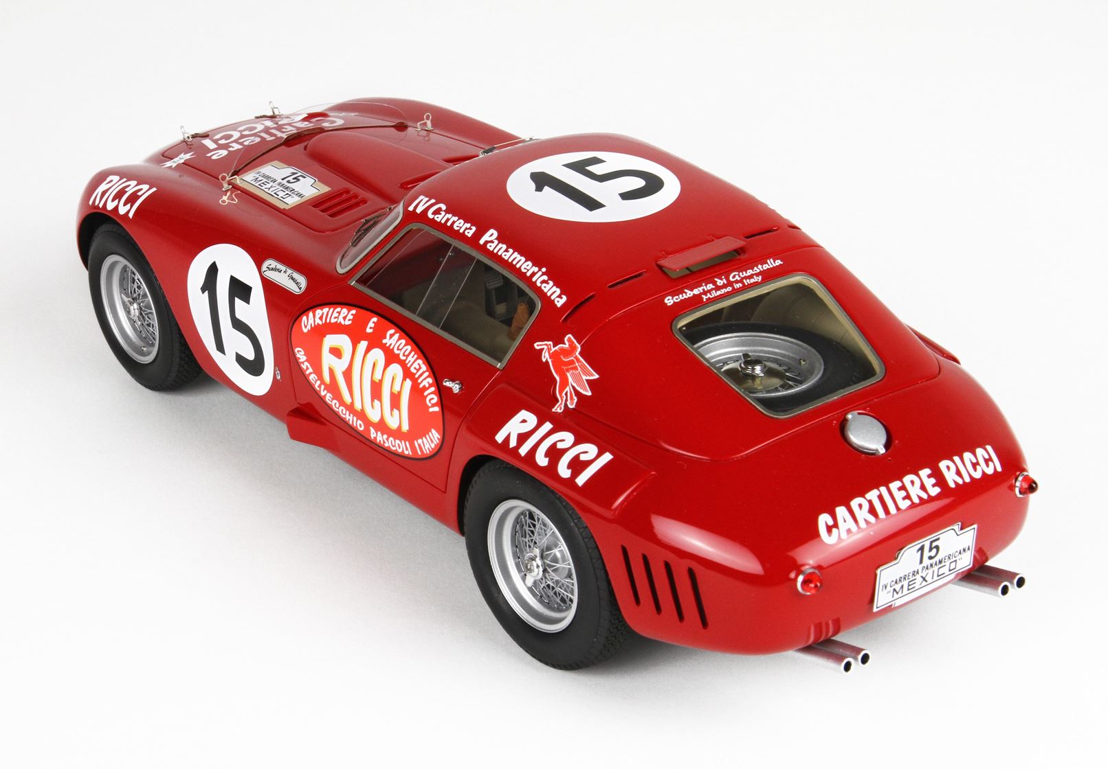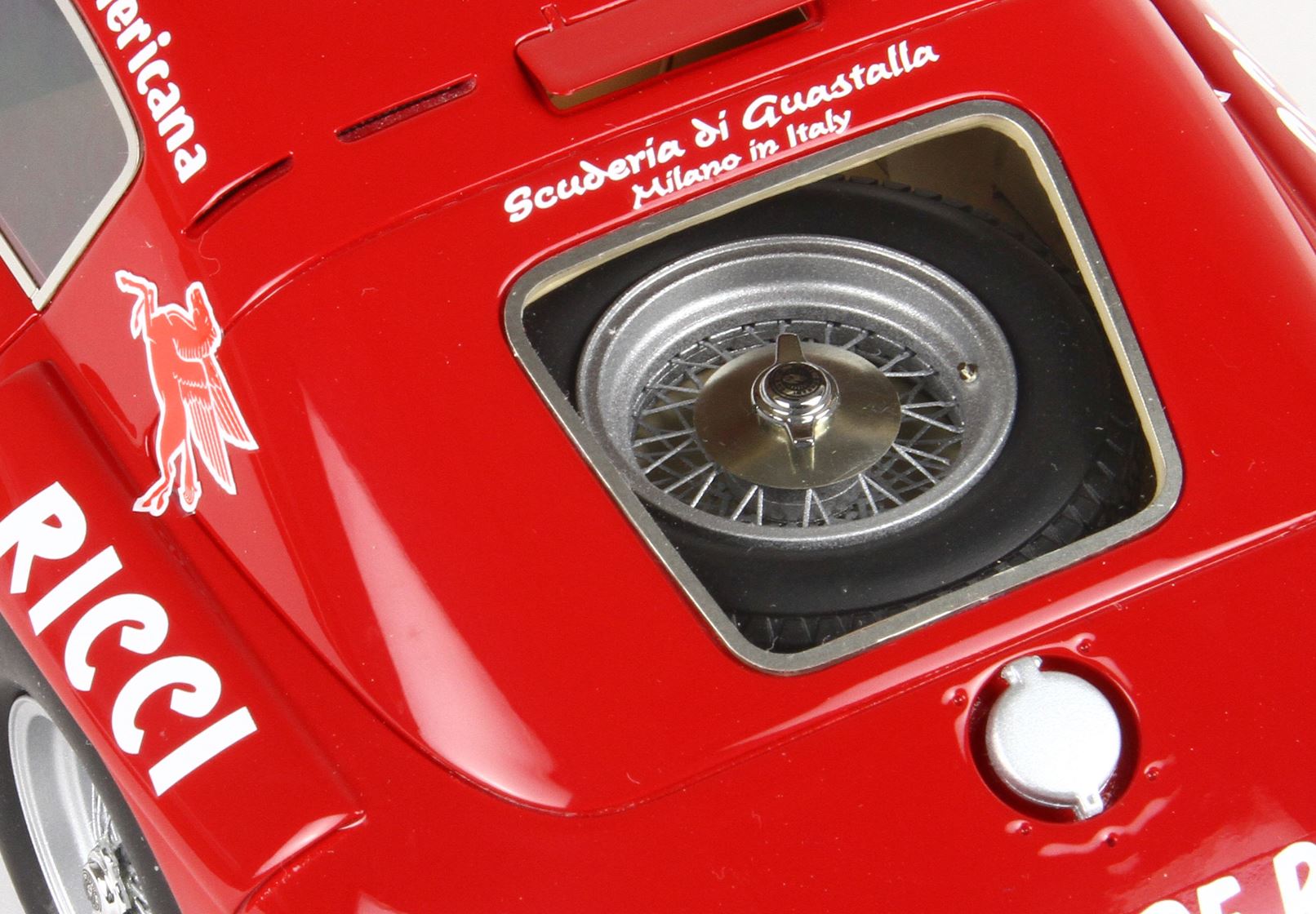 Fedele replica degli interni, con la ruota di sorta fissata sulla cappelliera, ruote in vero alluminio tornito.