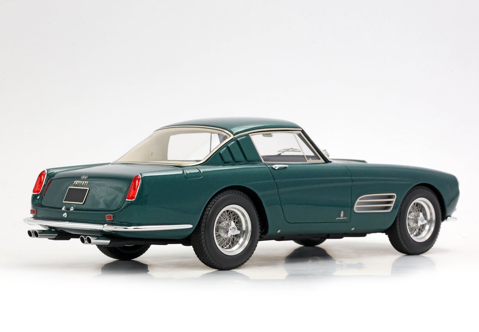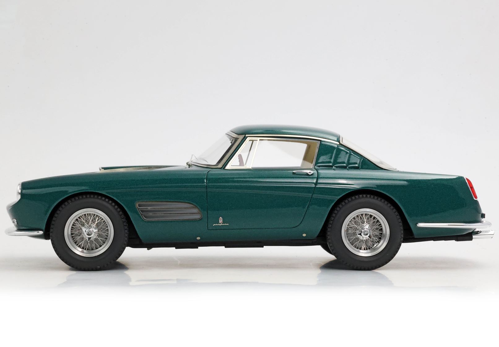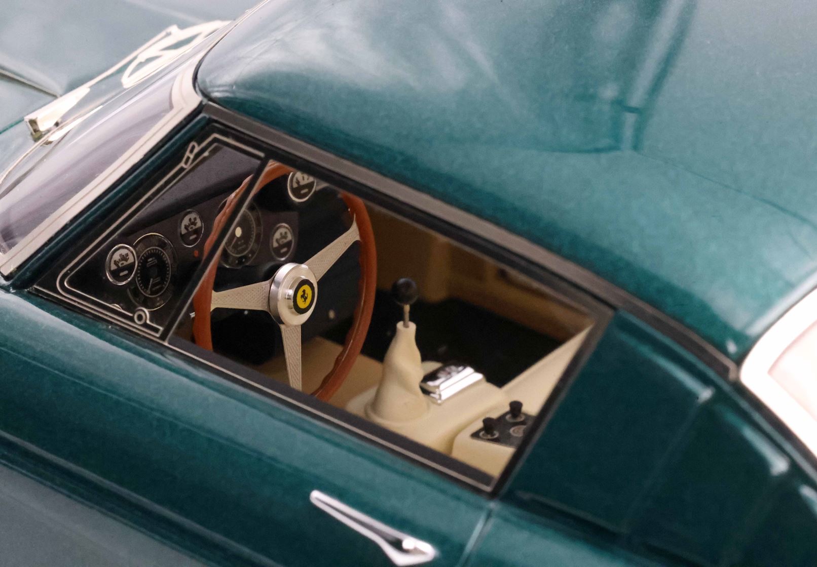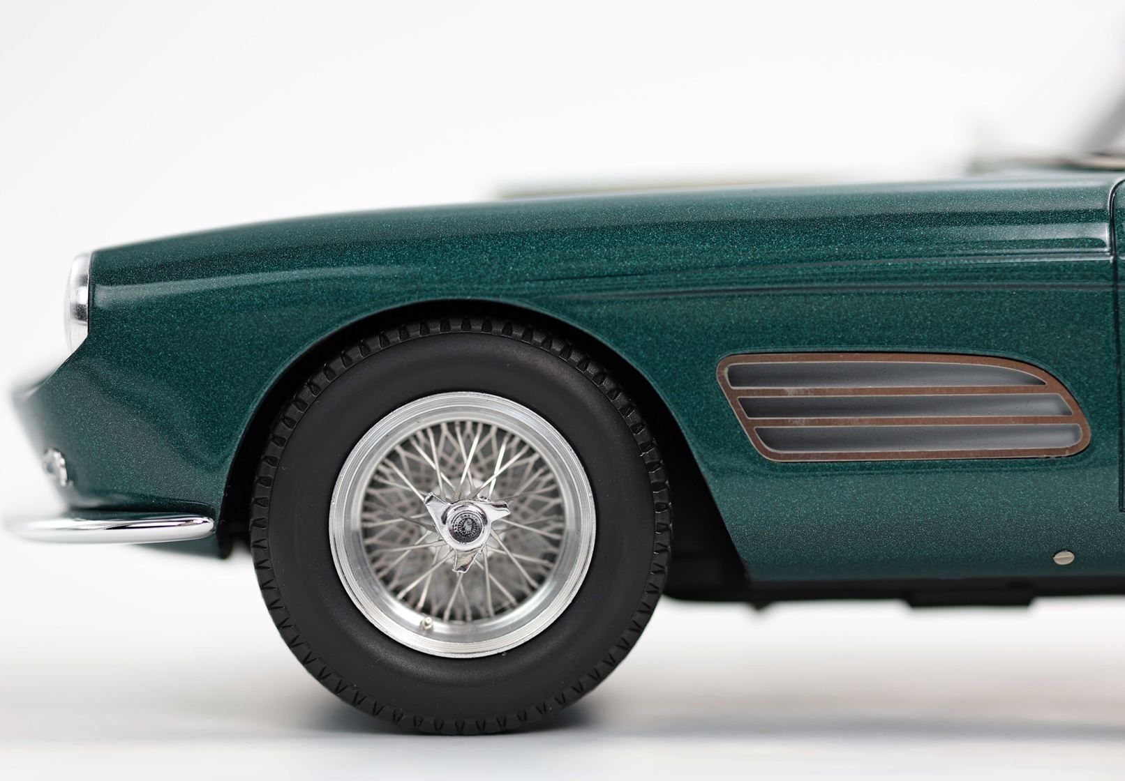 Il colore di questo automodello è in Verde Pino metallizzato, ruote a raggi Borrani , replicate in vero alluminio tornito e logo Borrani al centro del galletto ferma ruota