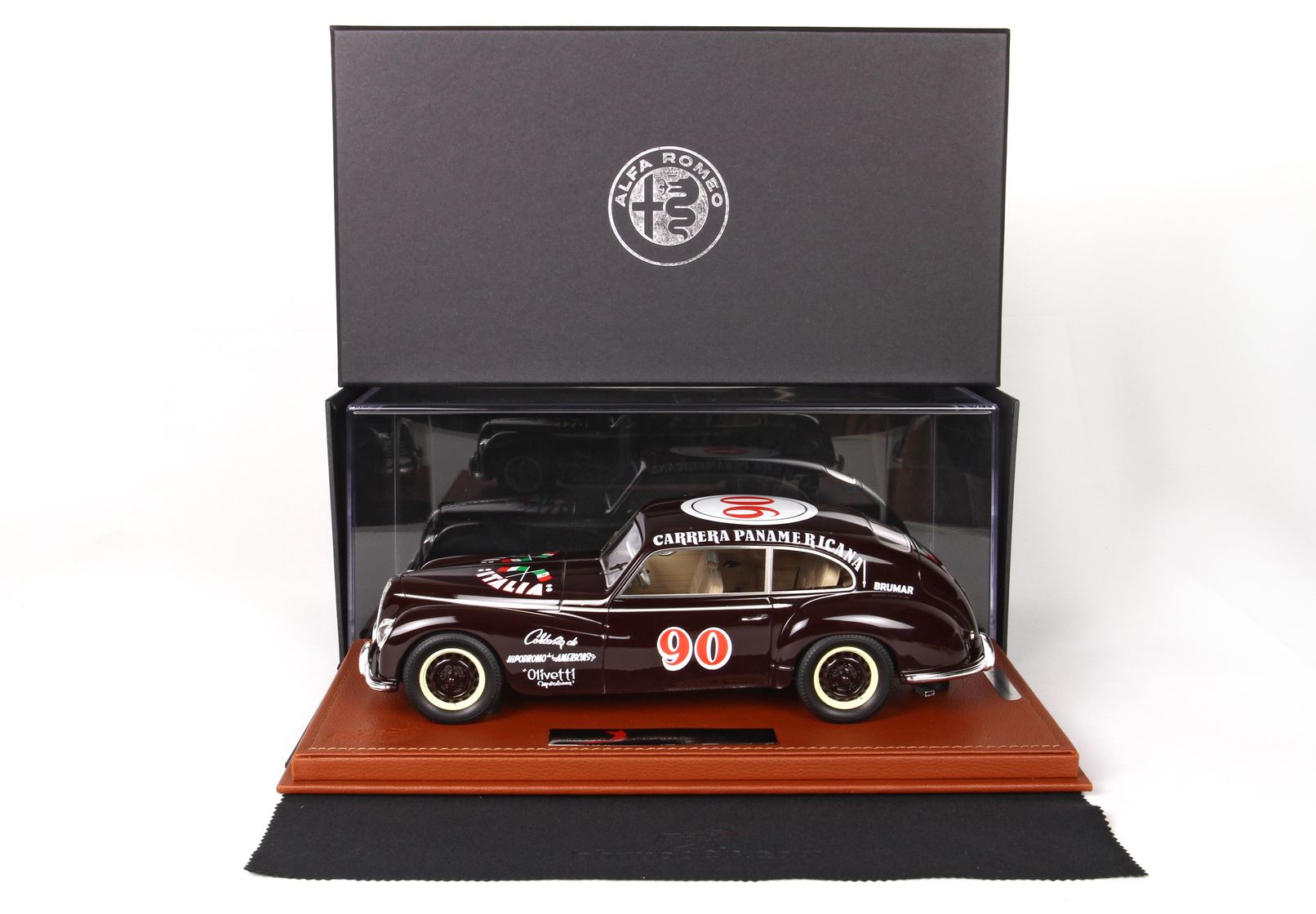 Questo esemplare esce dagli stabilimenti Alfa Romeo il 1° aprile 1950 ed è destinato fin da subito alla massacrante corsa messicana “Carrera Panamericana”. La gara, che quell’anno si disputava per la prima volta, era una massacrante corsa di parecchi giorni sulle pericolose strade messicane. L’Alfa Romeo iscrisse questa vettura con il famoso pilota Felice Bonetto(accompagnato dal meccanico Bruno Bonini) e una vettura simile guidata da Piero Taruffi. , che è quella che vi proponiamo.