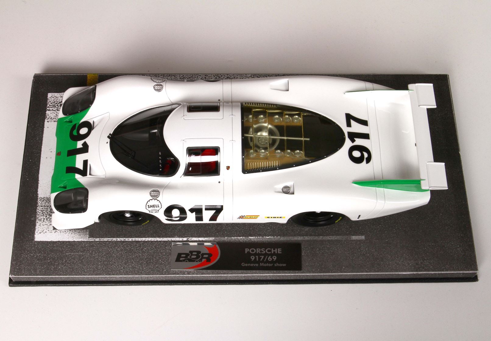 Al Salone di Ginevra del 1969 fu presentata la Porsche 917, sport prototipo realizzata per competere nella categoria fino a 5 litri di cilindrata. Il motore nasceva dall'unione di due monoblocchi del motore 6 cilindri boxer di 2.2 litri montato sulla Porsche 911 R, ottenendo un 12 cilindri boxer con cilindrata di 4.494cm³, montato in posizione centrale longitudinale, che sviluppava una potenza di 520cv a 8.000 giri al minuto. Il telaio era a traliccio tubolare in lega di alluminio, la carrozzeria in pannelli di poliestere e il peso totale della vettura era di 800 kg. L'aspetto era quello di una Porsche 908 super palestrata, con l'abitacolo spostato in avanti per far spazio al grosso motore.
