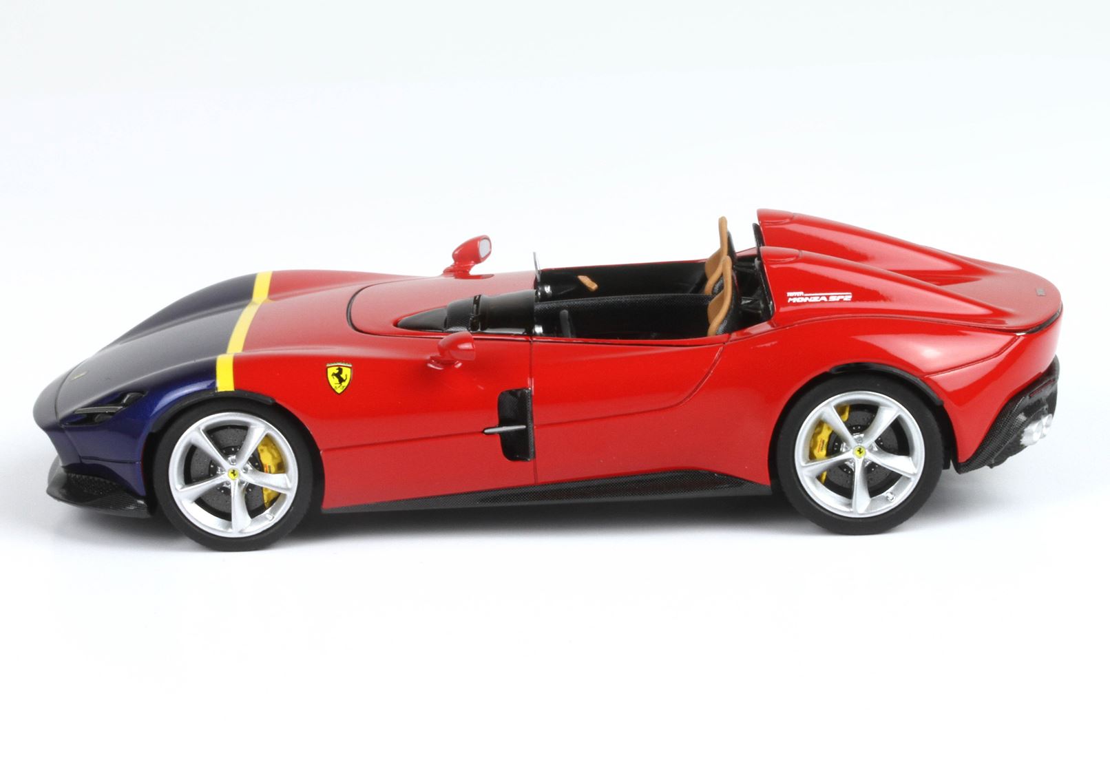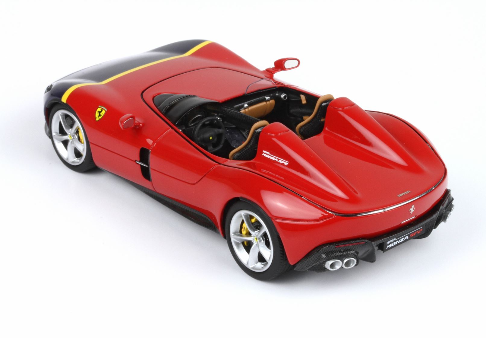 Sembra che il proprietario della biposto stimi parecchio Juan Manuel Fangio, pilota automobilistico e campione del mondo di Formula 1 nel 1951, 1954, 1955, 1956 e 1957. In particolare, questa Monza SP2 dispone di una verniciatura rosso-blu-giallo che ricorda proprio i colori usati sulla vettura da corsa Ferrari 290 MM guidata dal più volte campione di F1.