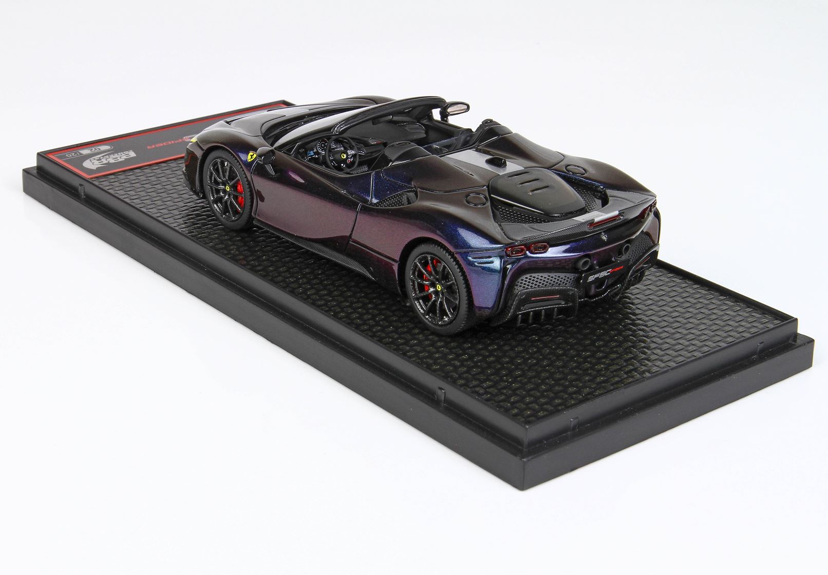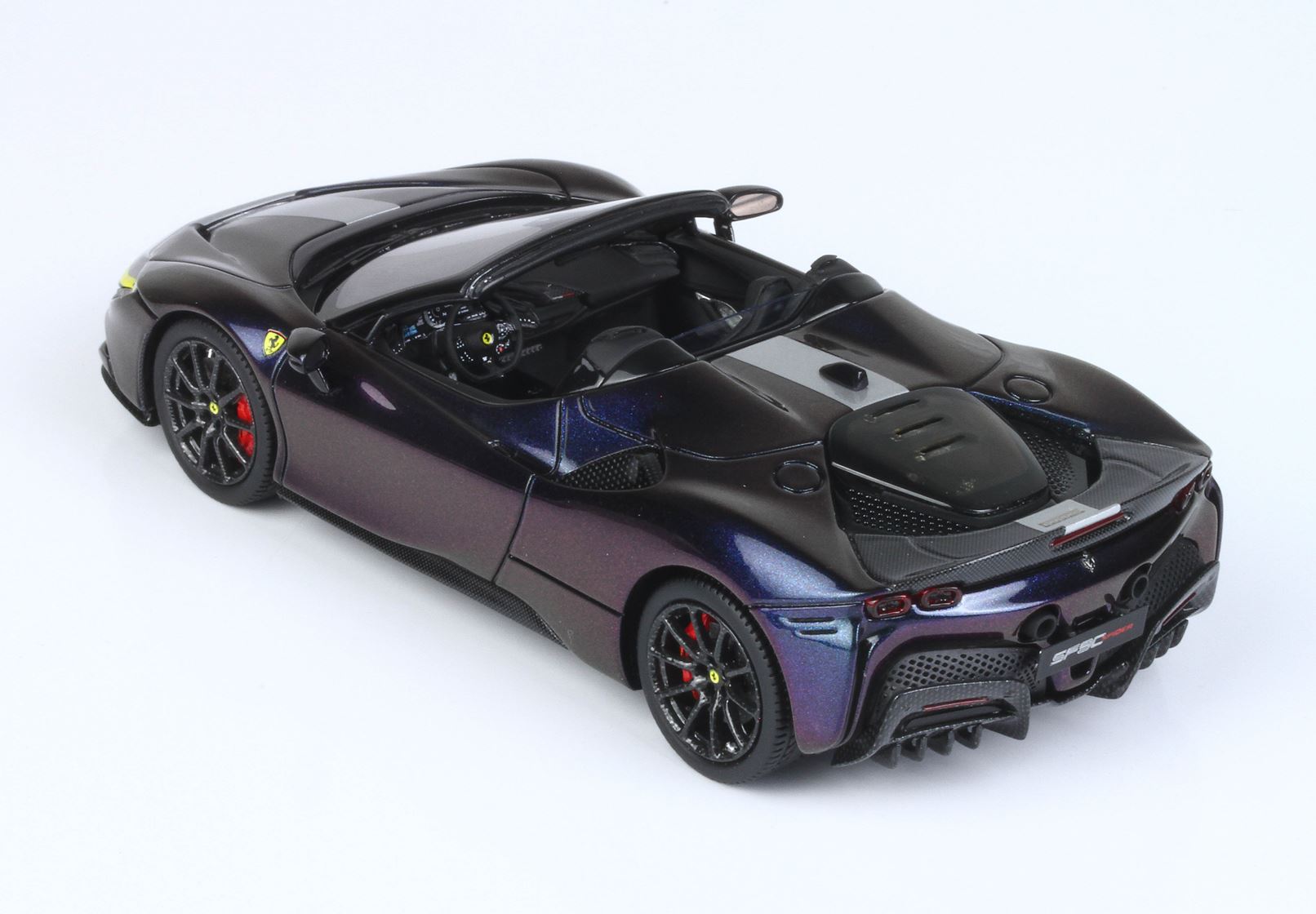 La strape identifica la versione Pack Fiorano, come la parte posteriore il motore, che è in replica fibra di Carbonio.