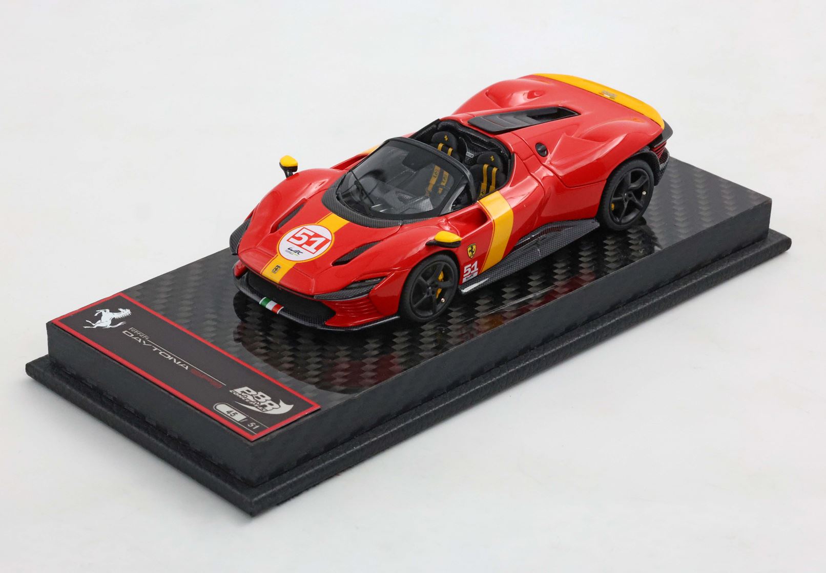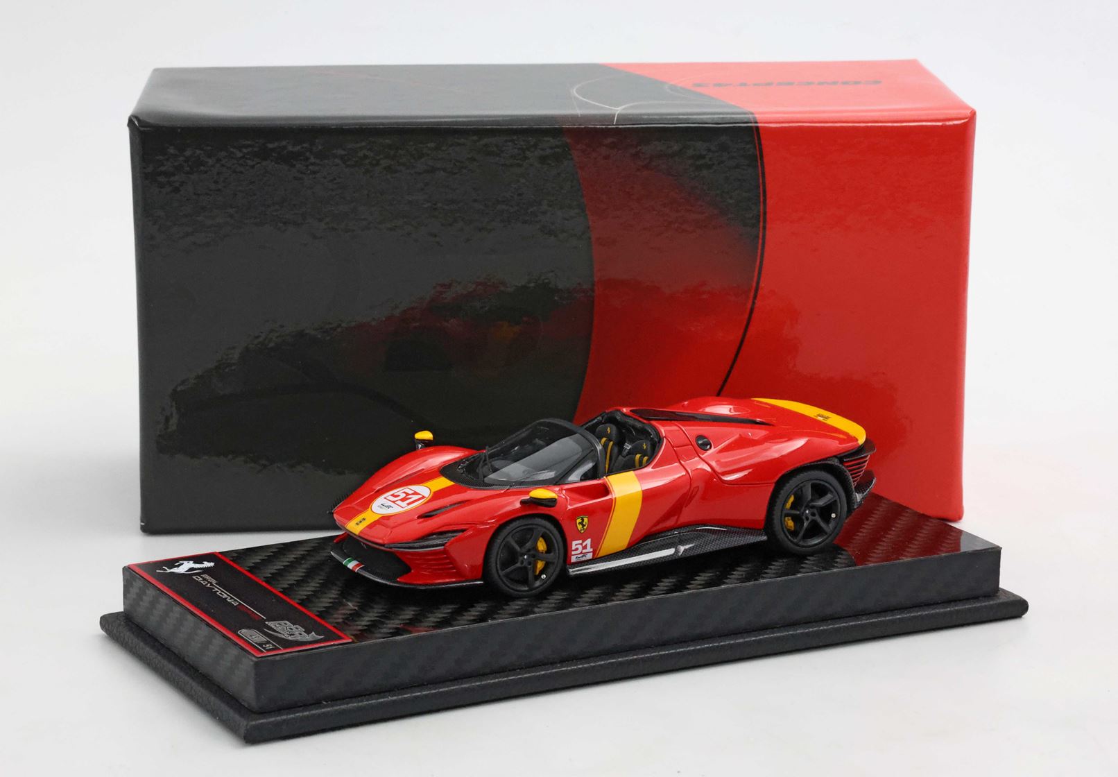Concept43, la qualità e l'innovazione BBR alla sua massima espressione. Modelli interamente studiati nei laboratori italiani ma assemblati in Cina. Le parti aerodinamiche sono realizzate con utilizzo di particolari in acciaio che permettendo la riduzione perfetta in scala 1/43 con spessori mai visti. Verniciatura e assemblaggio garantito da un BRAND che da più di 25 anni è sinonimo di qualità e perfezione.