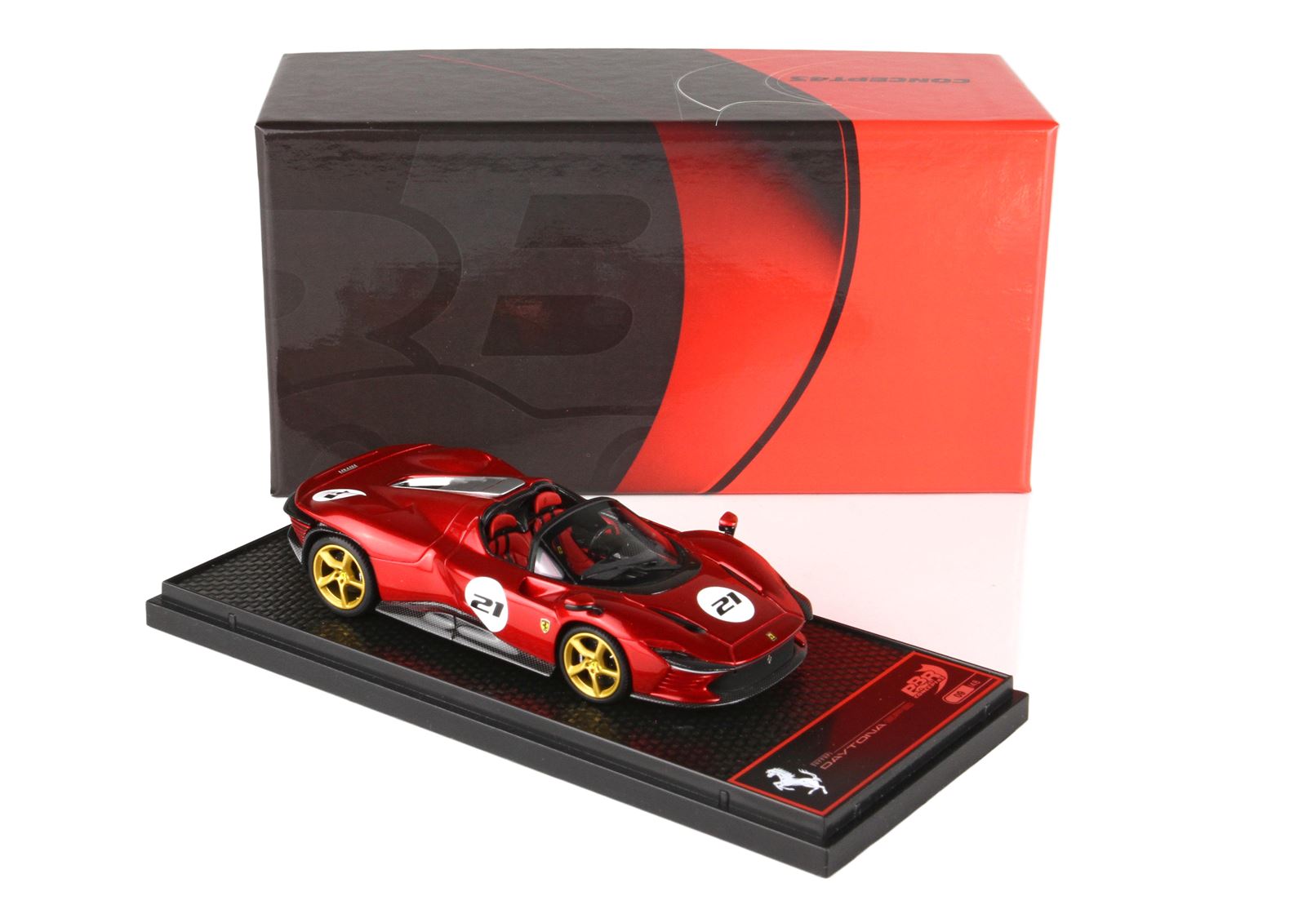 Concept43, la qualità e l'innovazione BBR alla sua massima espressione. Modelli interamente studiati nei laboratori italiani ma assemblati in Cina. Le parti aerodinamiche sono realizzate con utilizzo di particolari in acciaio che permettendo la riduzione perfetta in scala 1/43 con spessori mai visti. Verniciatura e assemblaggio garantito da un BRAND che da più di 25 anni è sinonimo di qualità e perfezione.