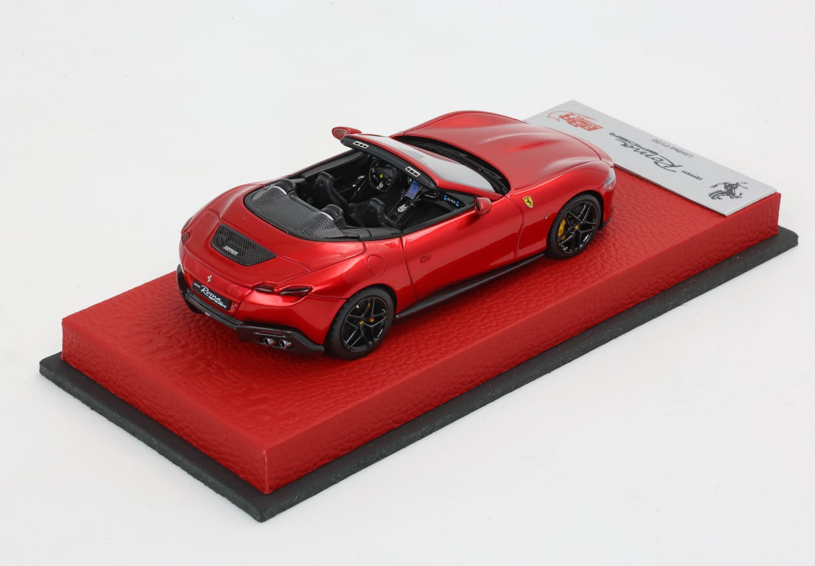 Edizione prodotta da BBR composta da basetta PREMIUM rossa in pelle e targhetta in metallo. Modello prodotto con questo packaging in pochissimi pezzi limitati.