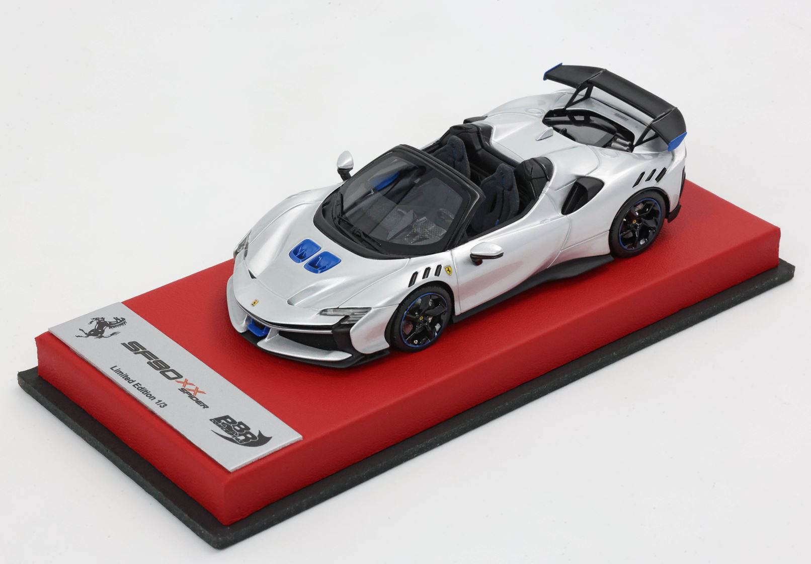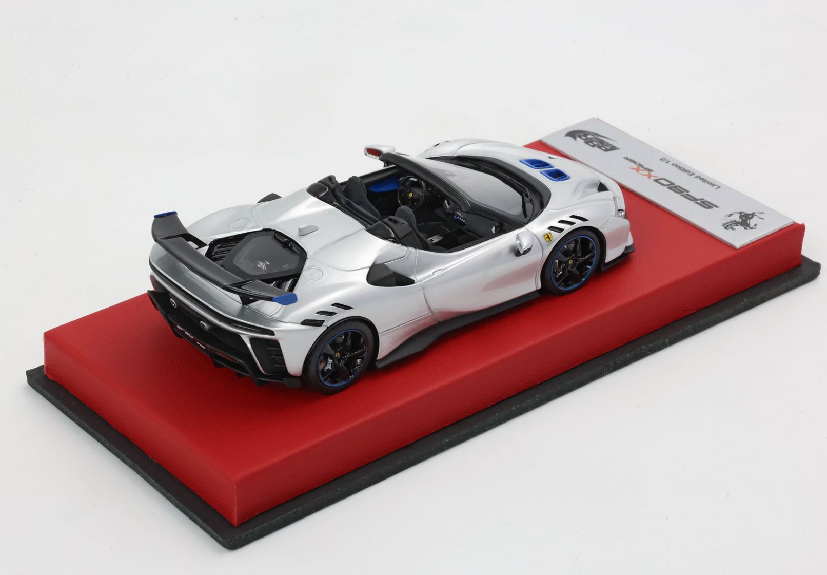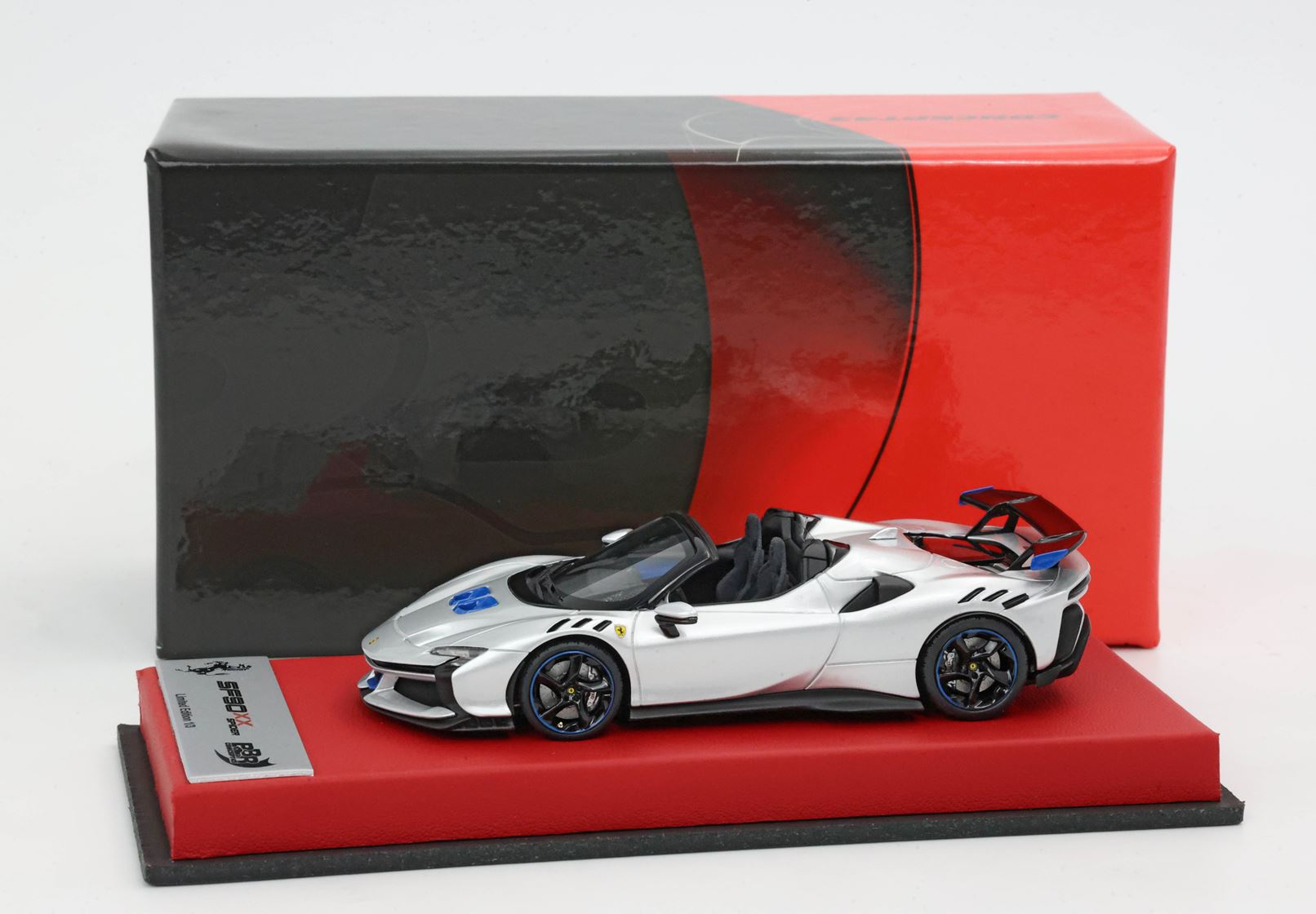 Edizione prodotta da BBR composta da basetta in vera pelle color rosso e targhetta in metallo. Modello prodotto con questo packaging in solo 3 pezzi limitati.
