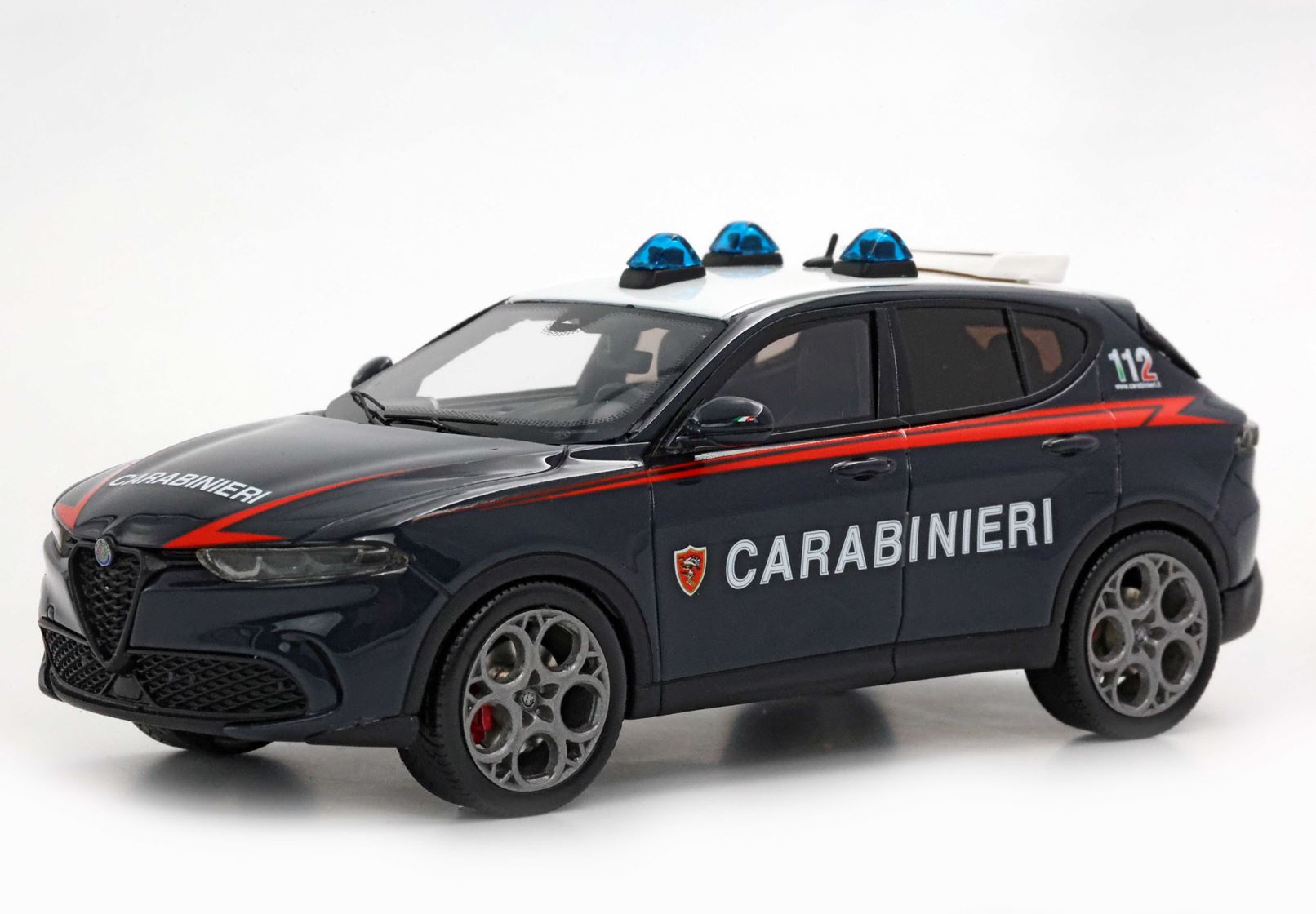 Sul modello BBR, luci e sirene* del tetto replicano esattamente l'auto speciale in dotazione ai Carabinieri.