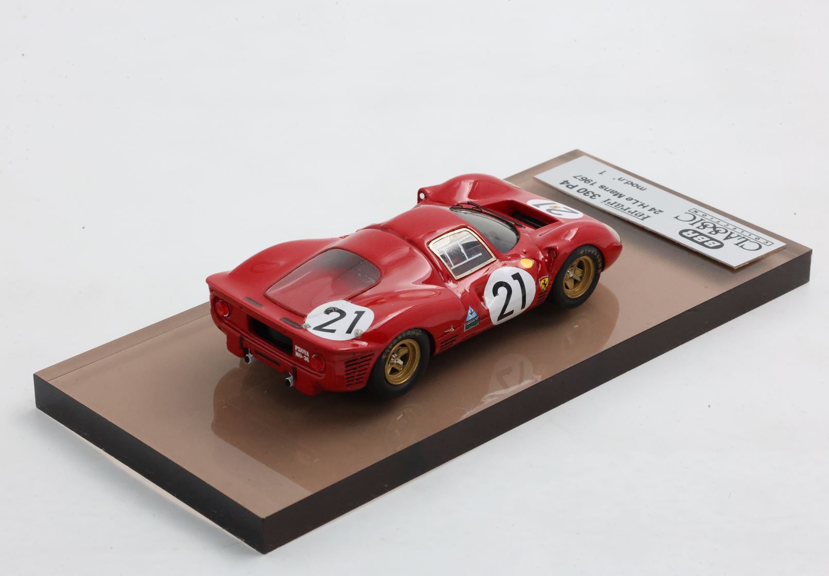 La Ferrari 330 P4 con il numero 21, iscritta da Sefac Ferrari alla 24 Ore di Le Mans del 1967, è ampiamente considerata una delle auto da corsa più belle e iconiche mai costruite. Guidata dalla formidabile coppia formata da Ludovico Scarfiotti e Mike Parkes, la Ferrari non riuscì a colmare il distacco dalla Ford in testa. La gara si concluse con uno storico secondo posto assoluto per la vettura numero 21, che completò 384 giri e si trovò a soli quattro giri dal vincitore, precedendo un'altra 330 P4 che tagliò il traguardo, assicurando così una amara doppietta (2-3) per Maranello.