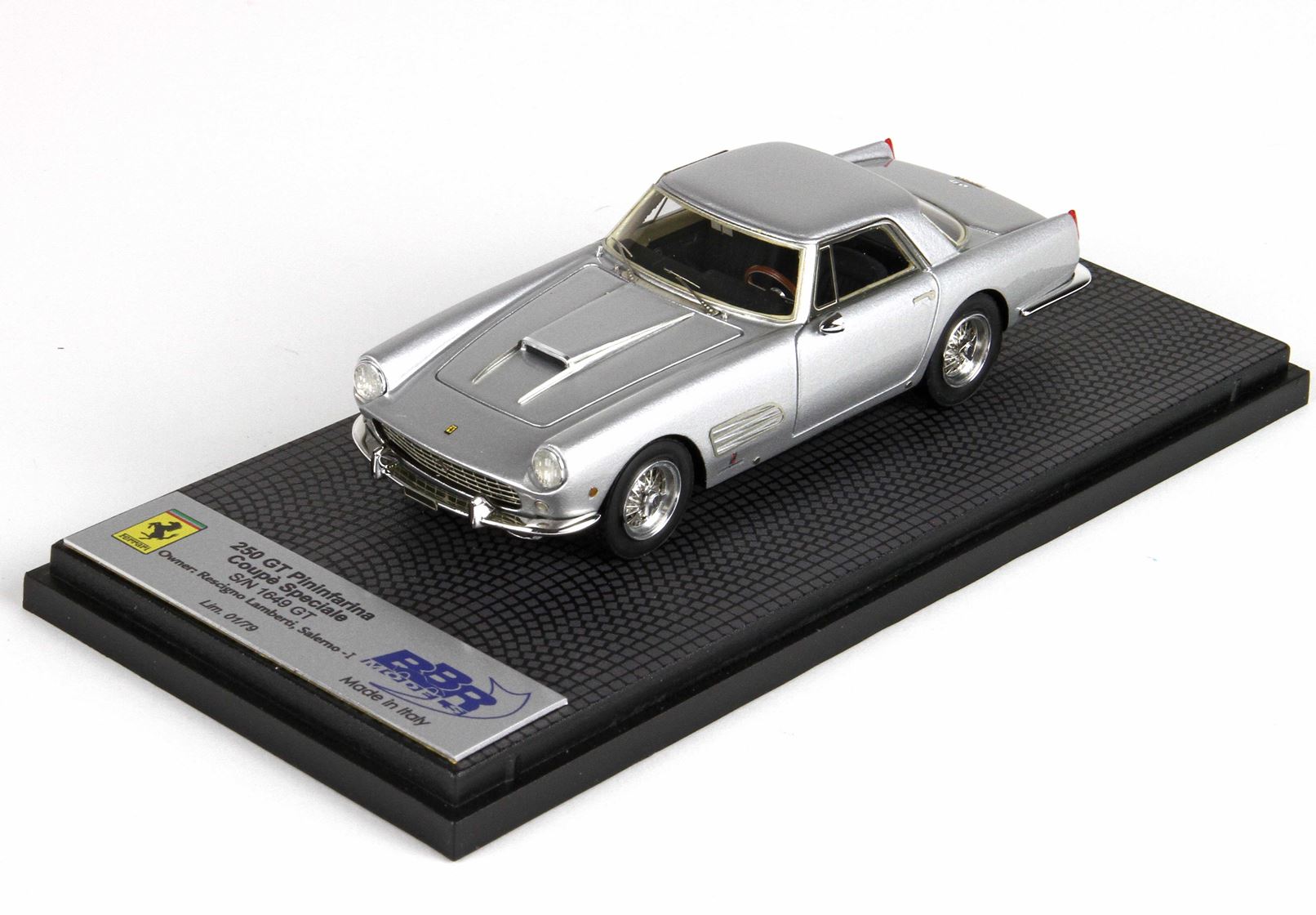 questa replica della 250 GT Pininfarina, in colore grigio metallizzato,