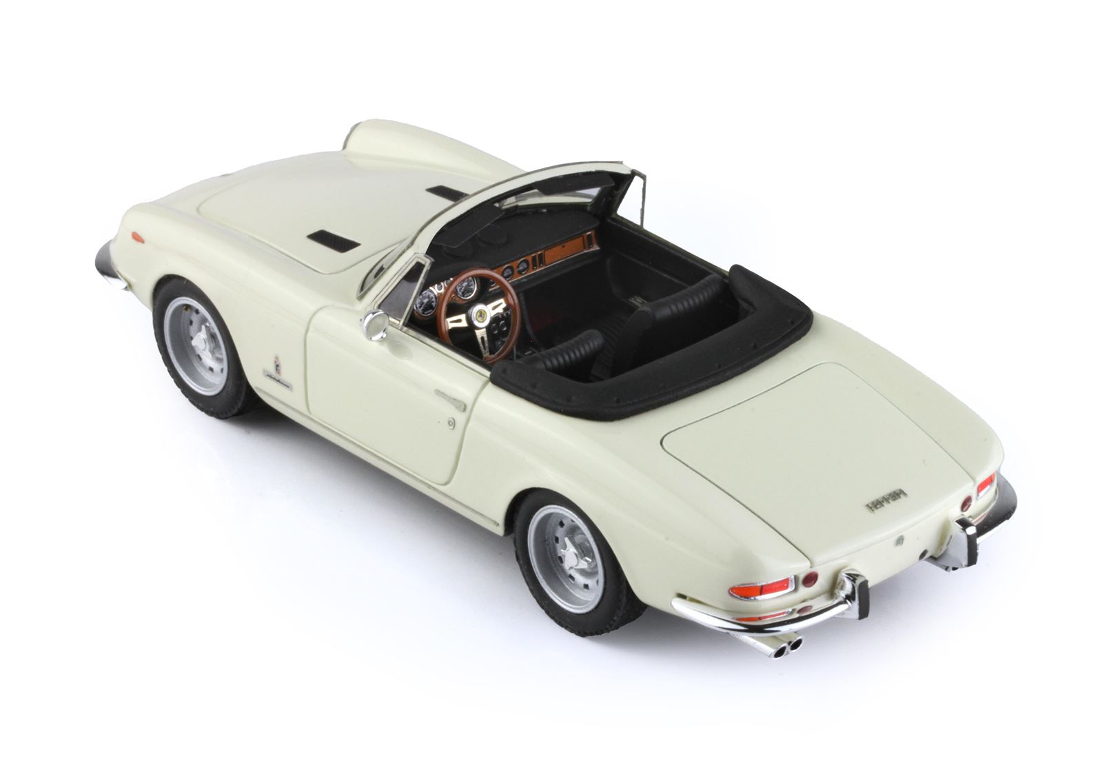 Prodotta dal febbraio all’ottobre 1969, la 365 GTS era dotata della stessa raffinata meccanica che troviamo sulla 365 GT 2+2 e sulla 365 GTC. Alimentato con tre carburatori Weber, il V12 a 60° offriva una notevole elasticità di marcia abbinata ad una gran riserva di potenza. Il cambio posteriore a cinque velocità rendeva inoltre ottimale la distribuzione dei pesi. A richiesta erano disponibili l’impianto di condizionamento e le ruote a raggi. Di questa spider furono costruiti venti esemplari.