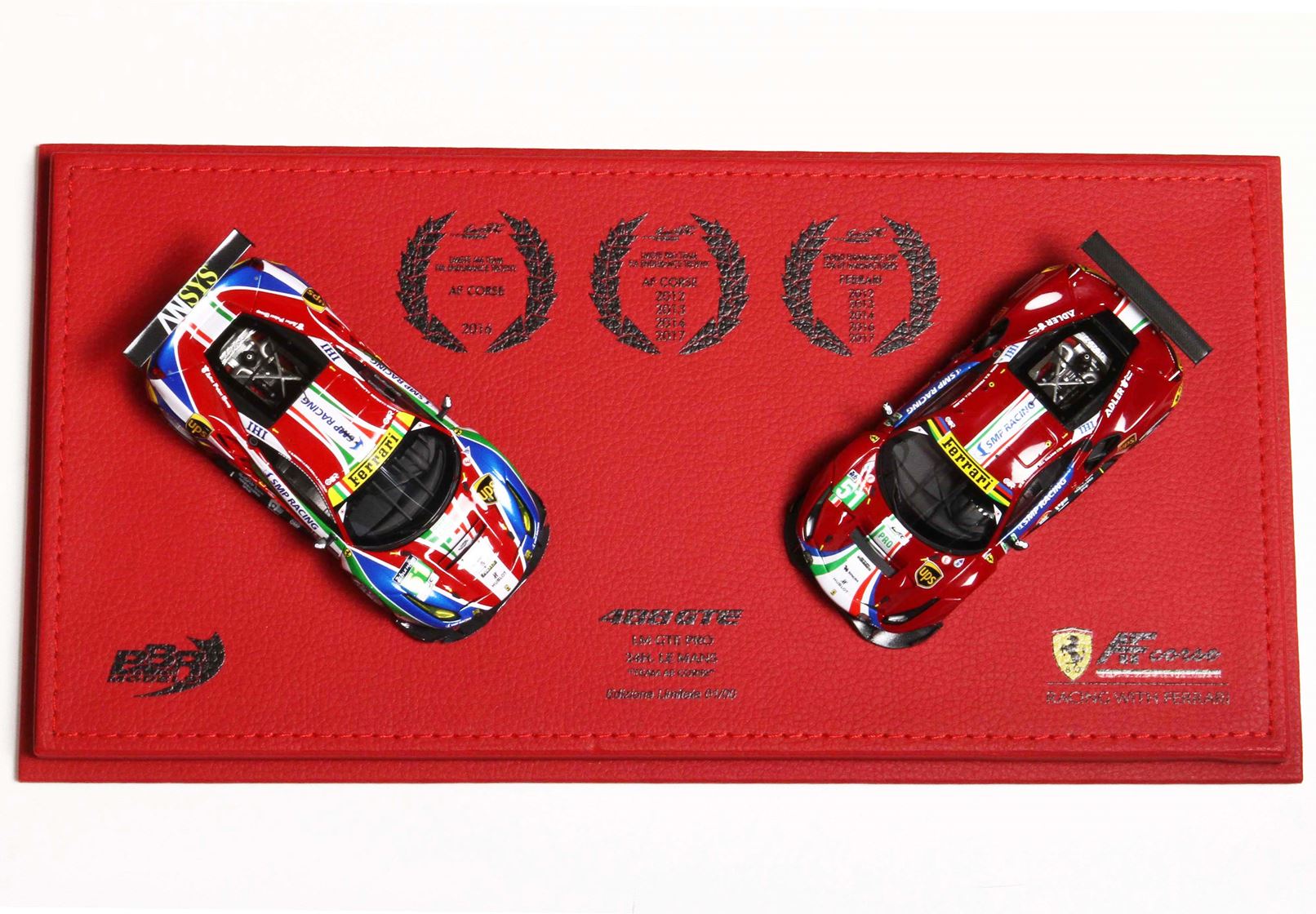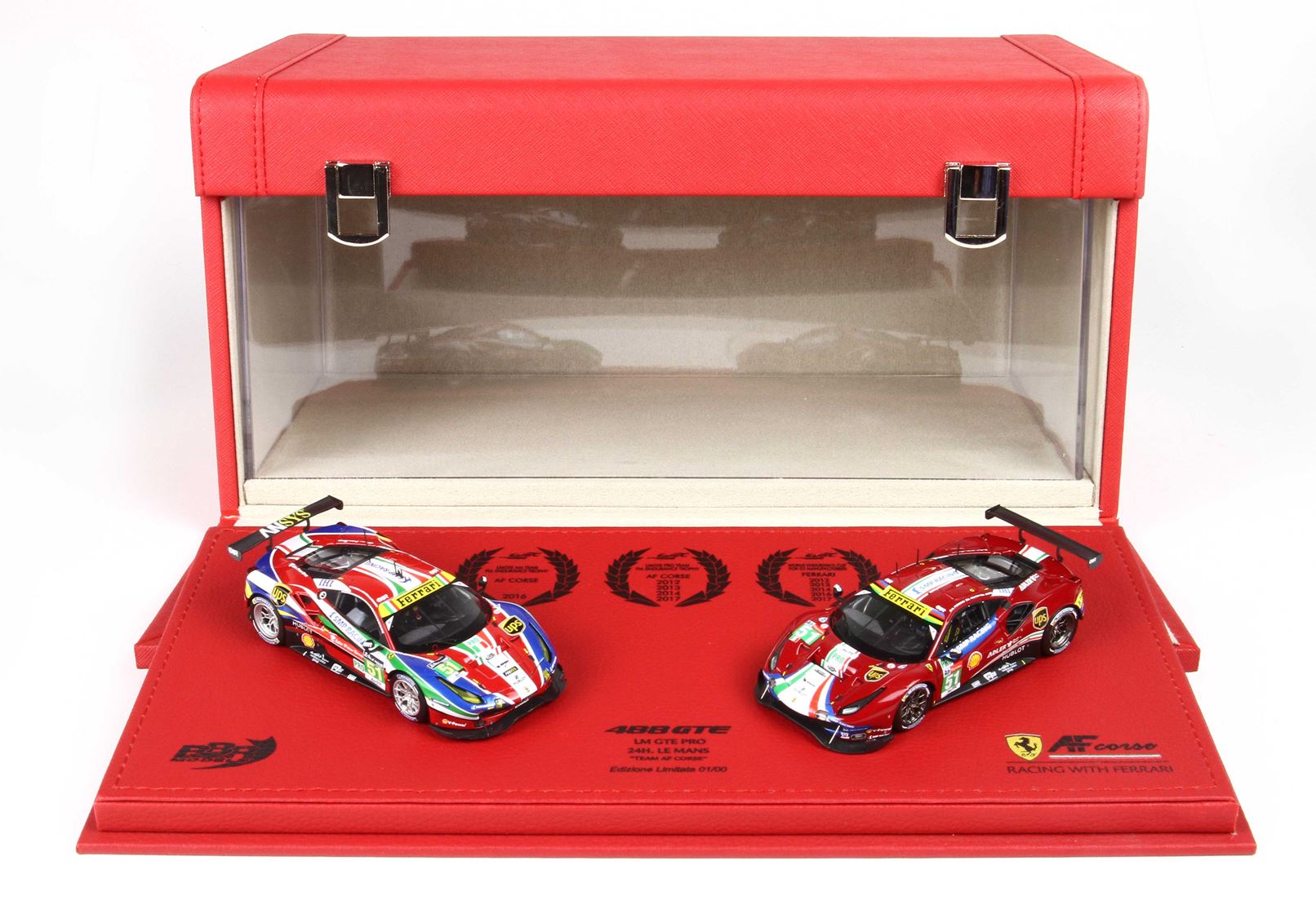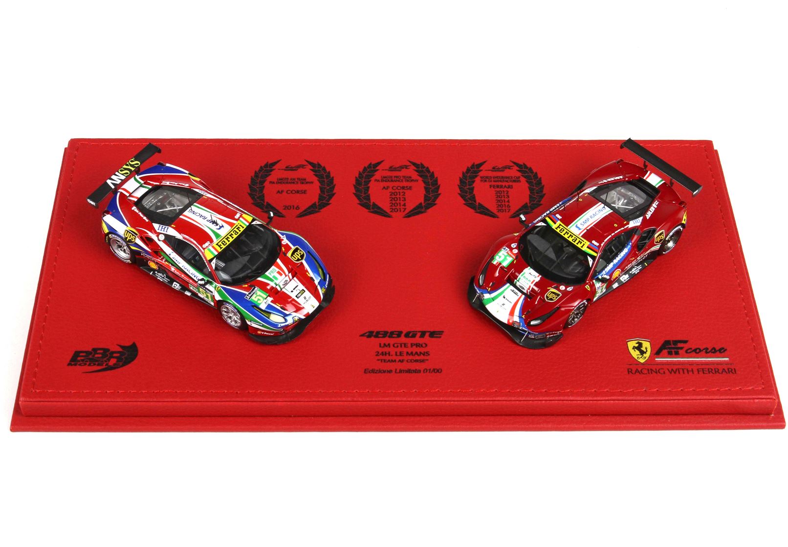 Sono segnate tutte le vittorie di AF Corse dal 2016, e gli automodelli riproducono la Ferrari 488 GTE di Le Mans 2016 e la Ferrai 488 GTE di Le Mans 2018.
