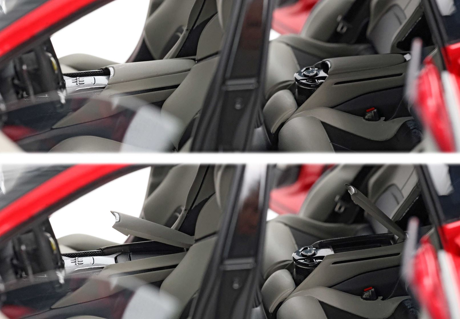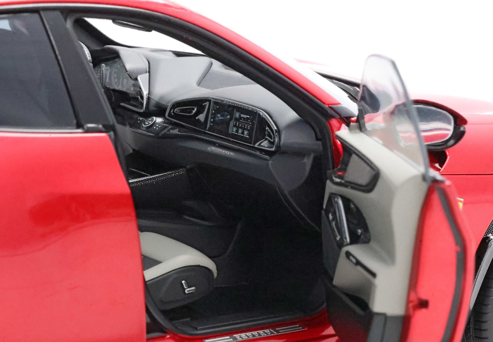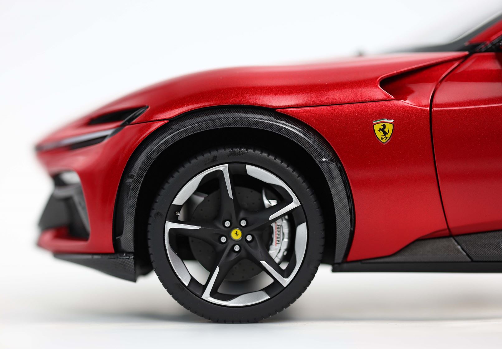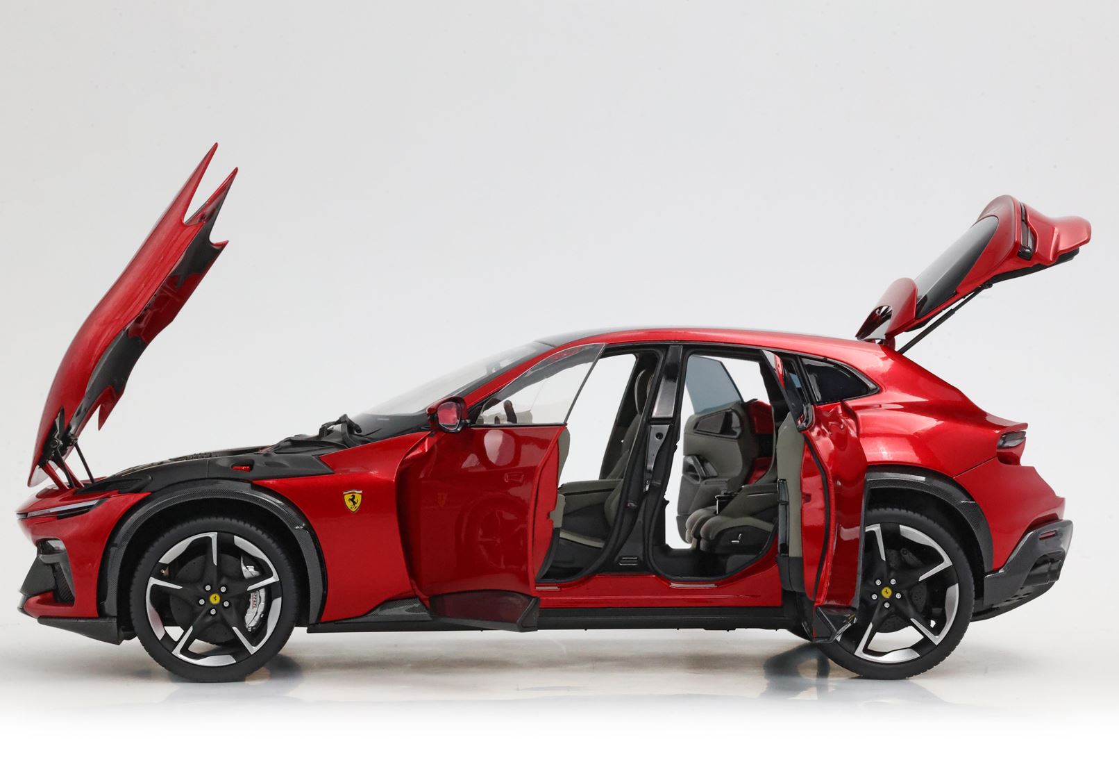 Esclusiva mondiale di Purosangue in scala 1/18 diecast completamente apribile. Rendono unico il modello firmato BBR, una fedele riproduzione dell’aperture di porte e cofani (tramite pistoncini telescopici) ma anche la possibilità di aprire braccioli interni e tappo benzina. Parti in metallo e abs si alternano a fotoincisioni e decals per un risultato di alta qualità. Quattro ruote realmente ammortizzate e sterzanti con due diversi tipi di cerchi: l’interruttore sul fondo permette inoltre di direzionare le ruote posteriori in direzione parallela o opposta. Tutto come nell'auto da strada ma racchiuso in pochi centimetri.