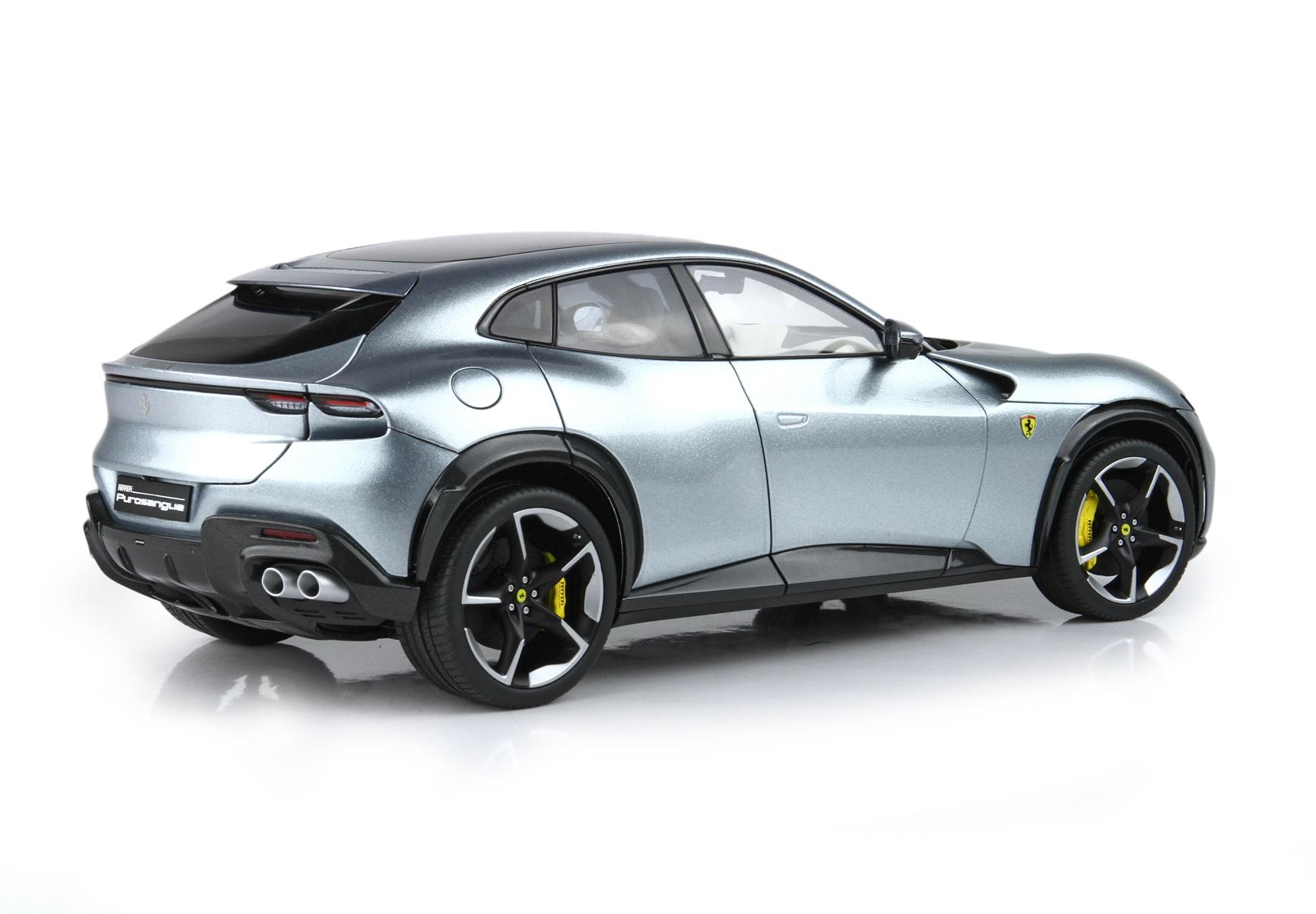 Esclusiva mondiale di Purosangue in scala 1/18 diecast completamente apribile. Rendono unico il modello firmato BBR, una fedele riproduzione dell’aperture di porte e cofani (tramite pistoncini telescopici) ma anche la possibilità di aprire braccioli interni e tappo benzina. Parti in metallo e abs si alternano a fotoincisioni e decals per un risultato di alta qualità. Quattro ruote realmente ammortizzate e sterzanti con due diversi tipi di cerchi: l’interruttore sul fondo permette inoltre di direzionare le ruote posteriori in direzione parallela o opposta. Tutto come nell'auto da strada ma racchiuso in pochi centimetri. Versione con tetto panoramico.