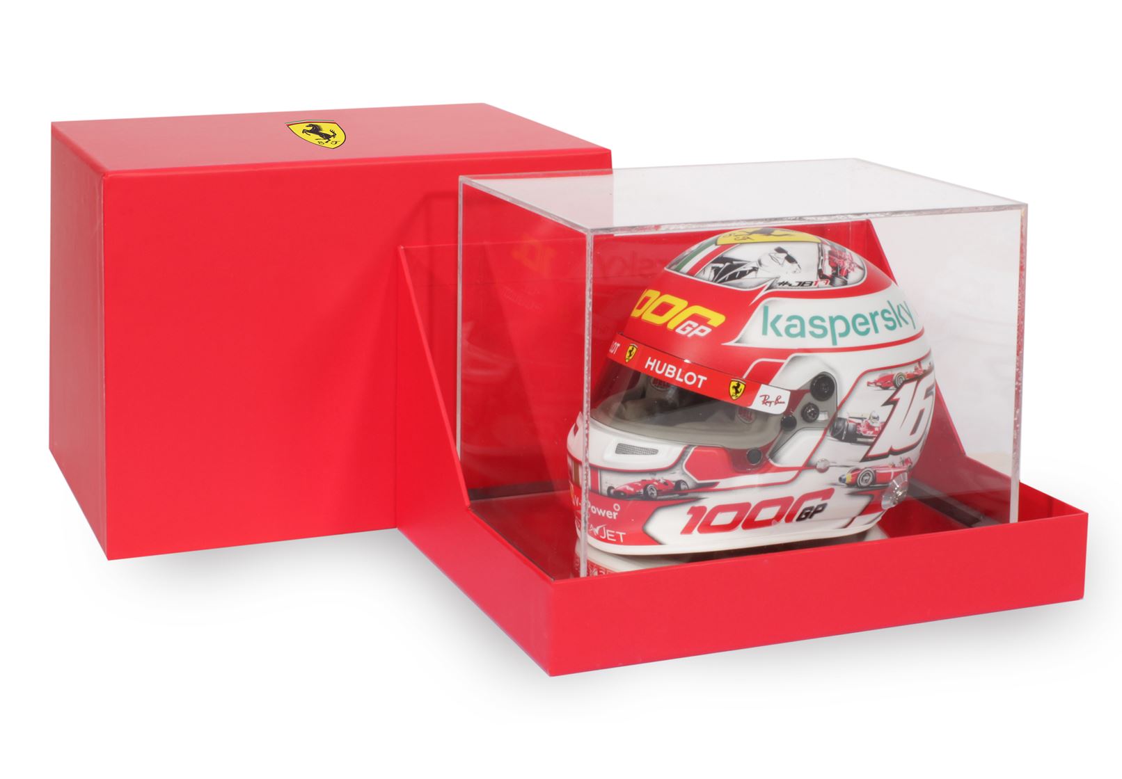 Per celebrare il 1000 ° GP della Scuderia Ferrari, siamo lieti di annunciare una serie limitata di 1.000 Mini Caschi in scala 1: 2 con il design specifico del casco utilizzato da Charles Leclerc per l'occasione speciale del 13 settembre 2020 all'Autodromo del Mugello - ITALIA.