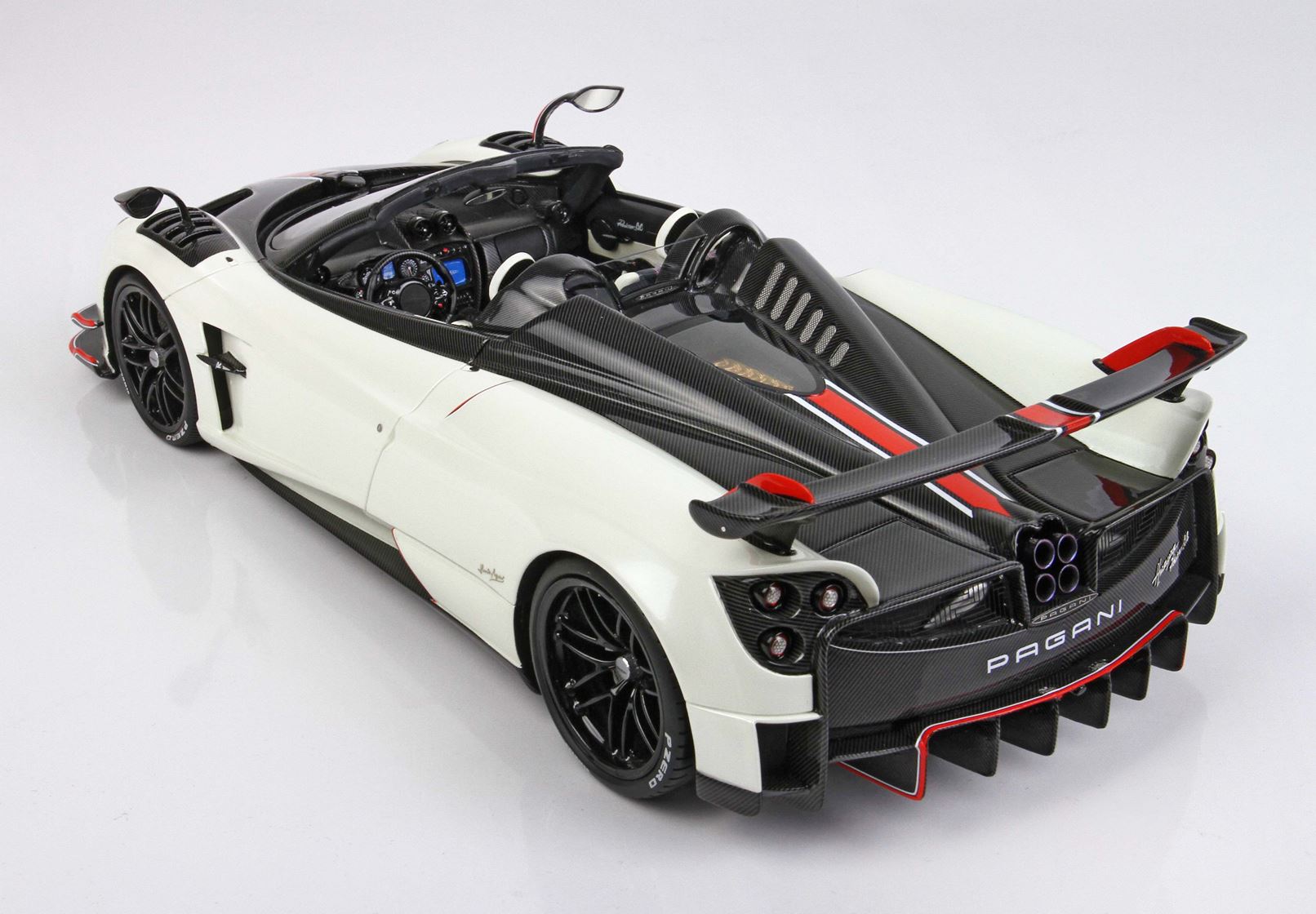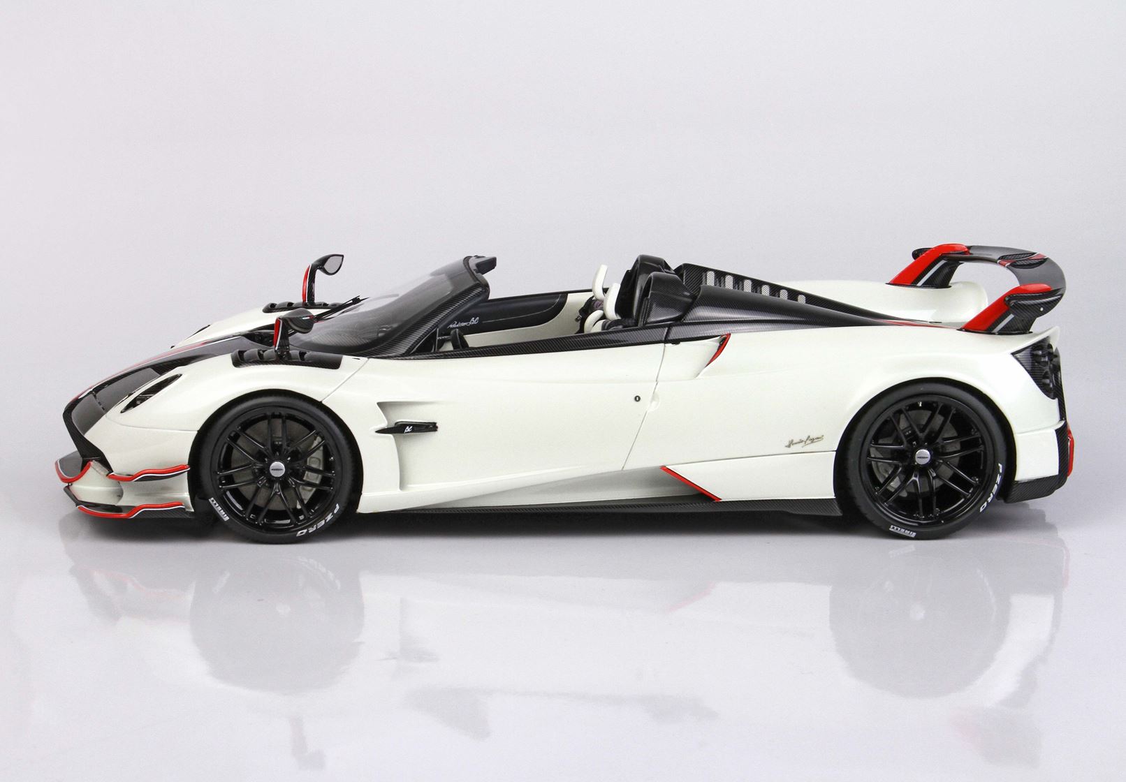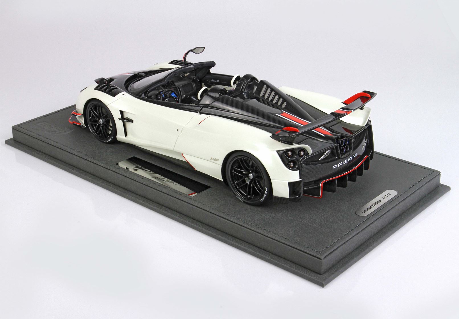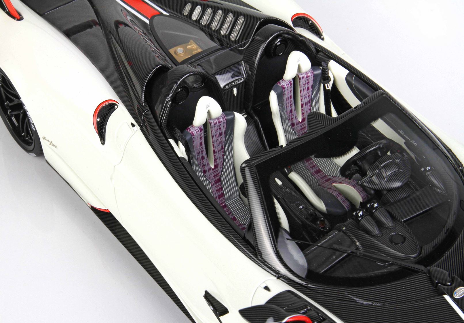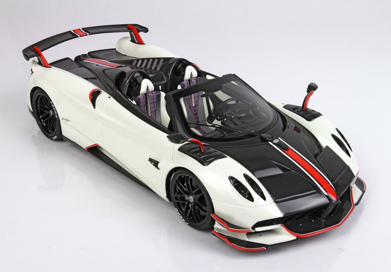 Metà automodello è rivestito a mano con replica decals Fibra di carbonio, dopo verniciato con trasparente.