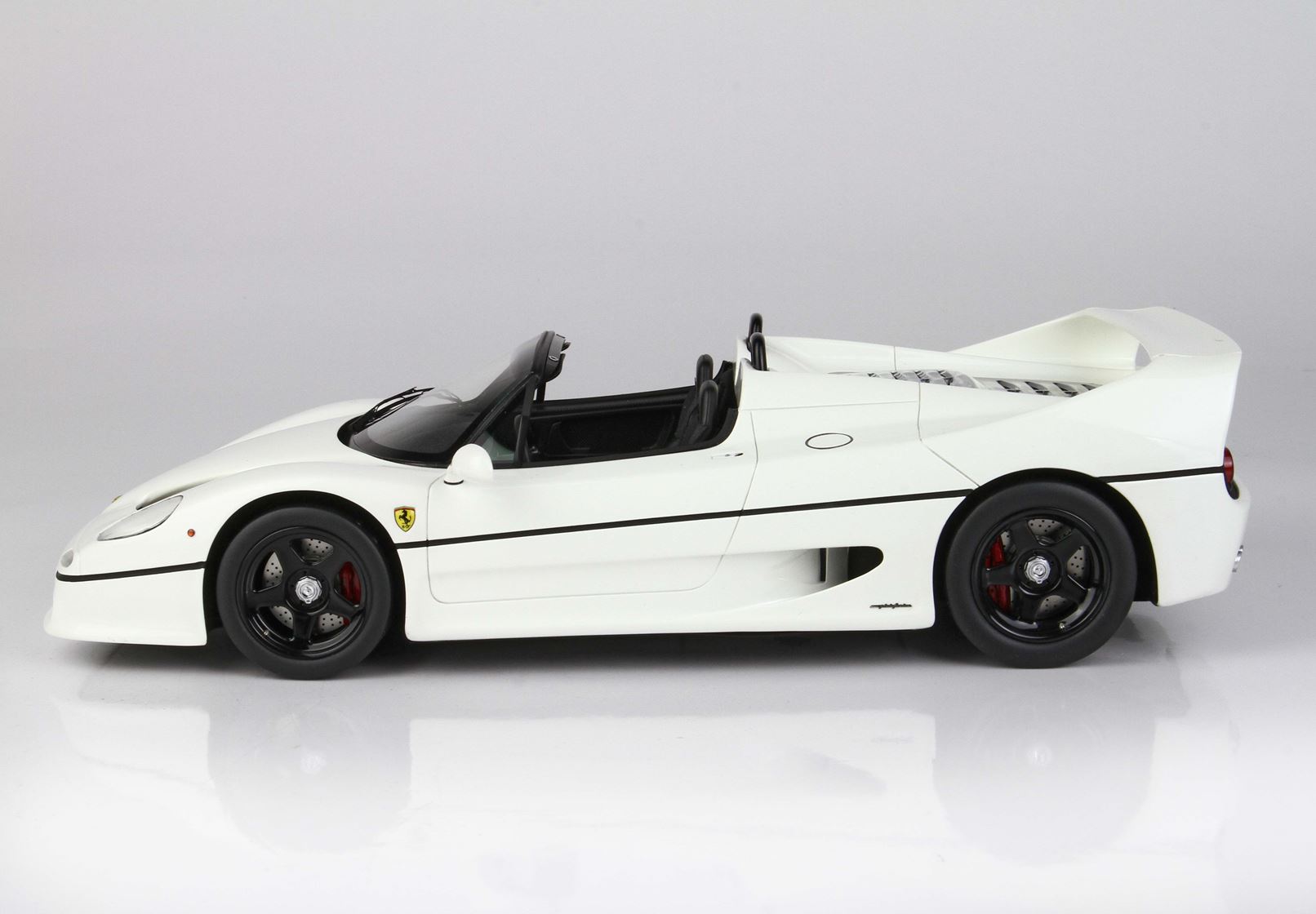Questa F50 in scala 1:18 vi stupirà per qualità e innovazione in quanto la novità assoluta è la retina grigliata che è modellata; tutto perfettamente uguale come nella reale F50 Coupé.
