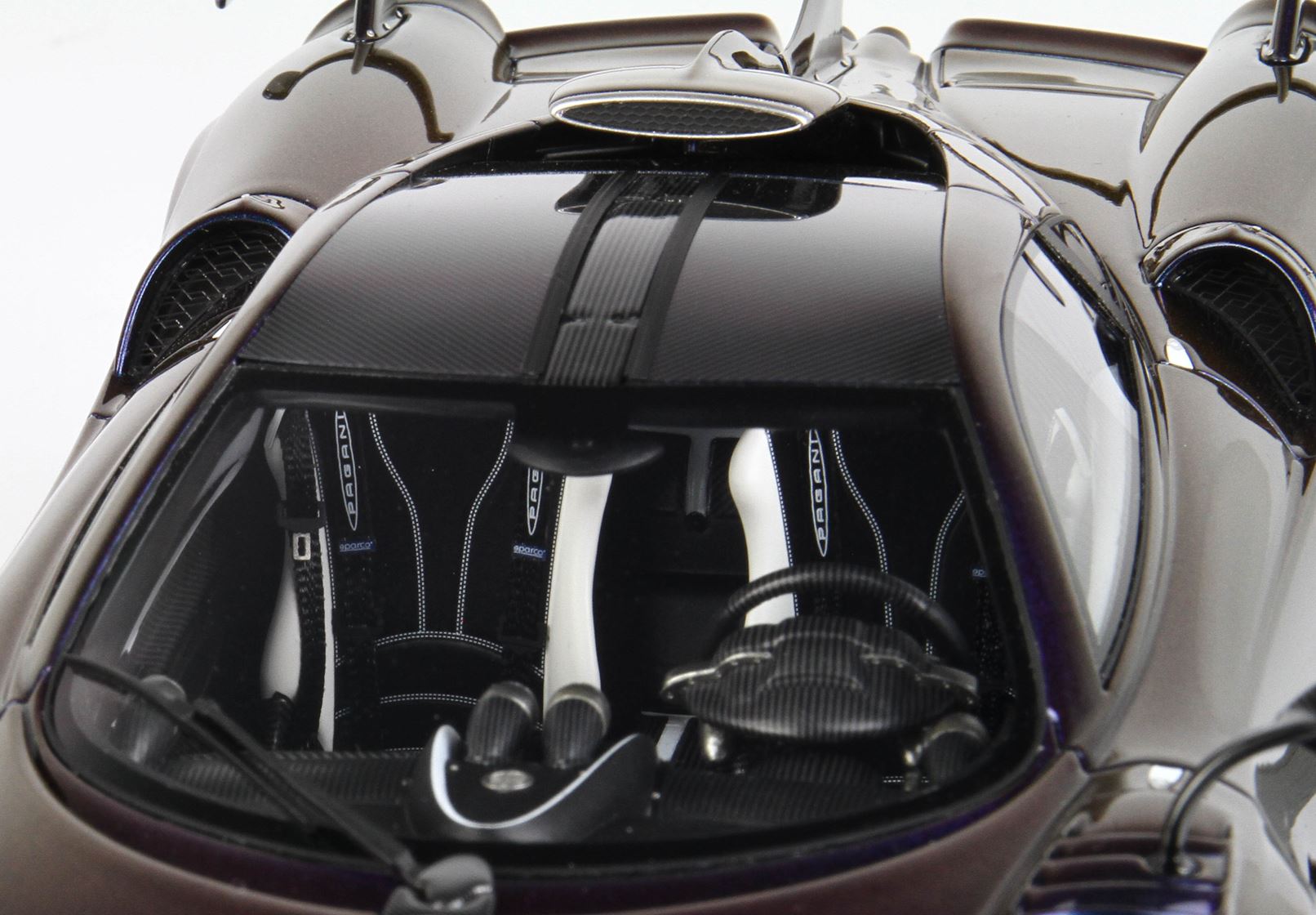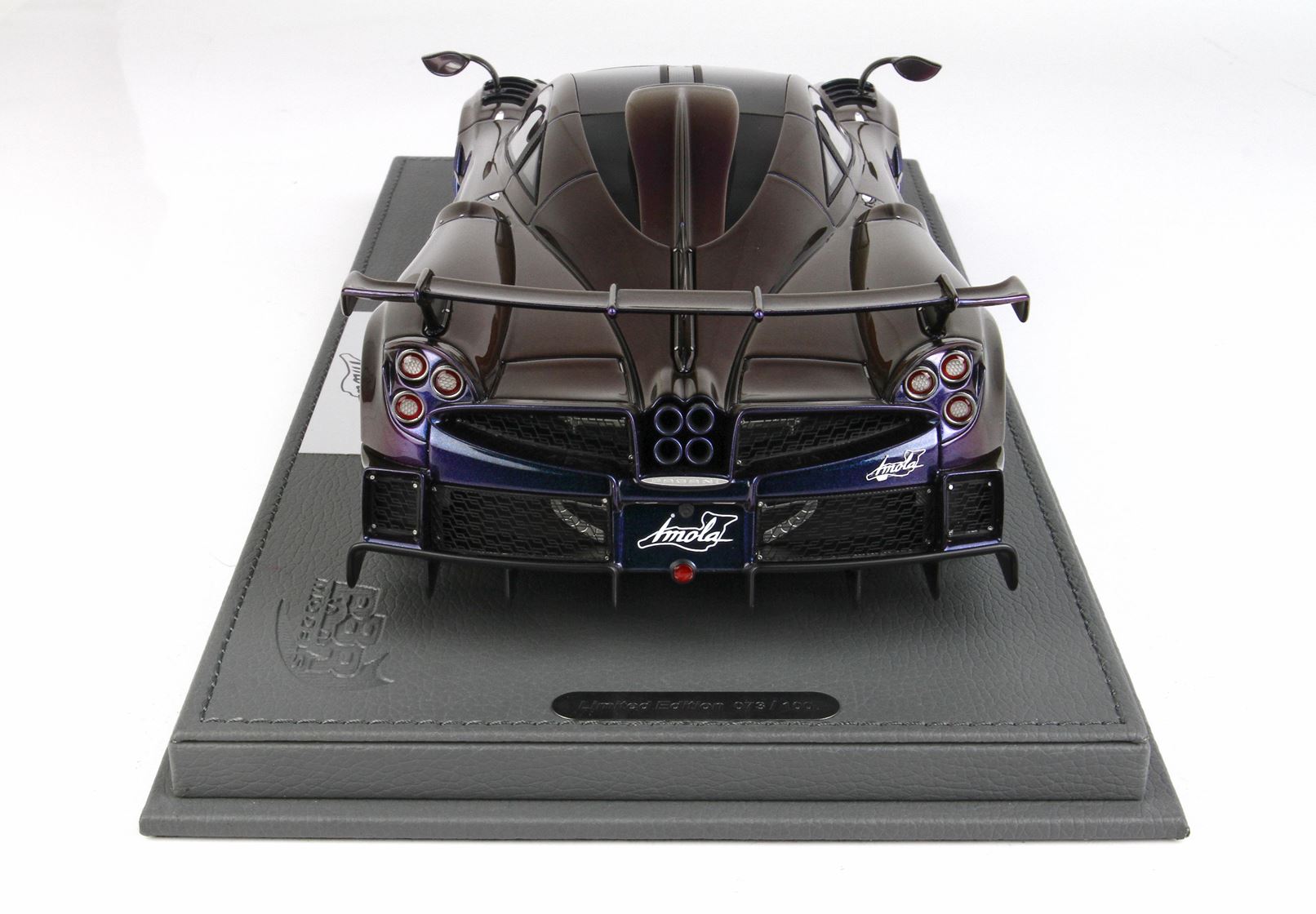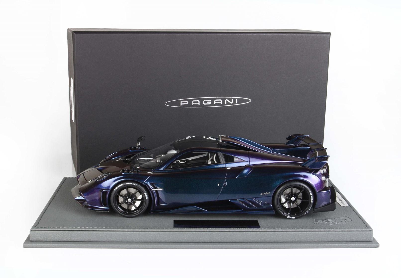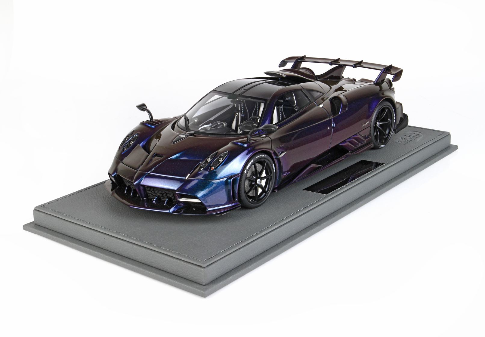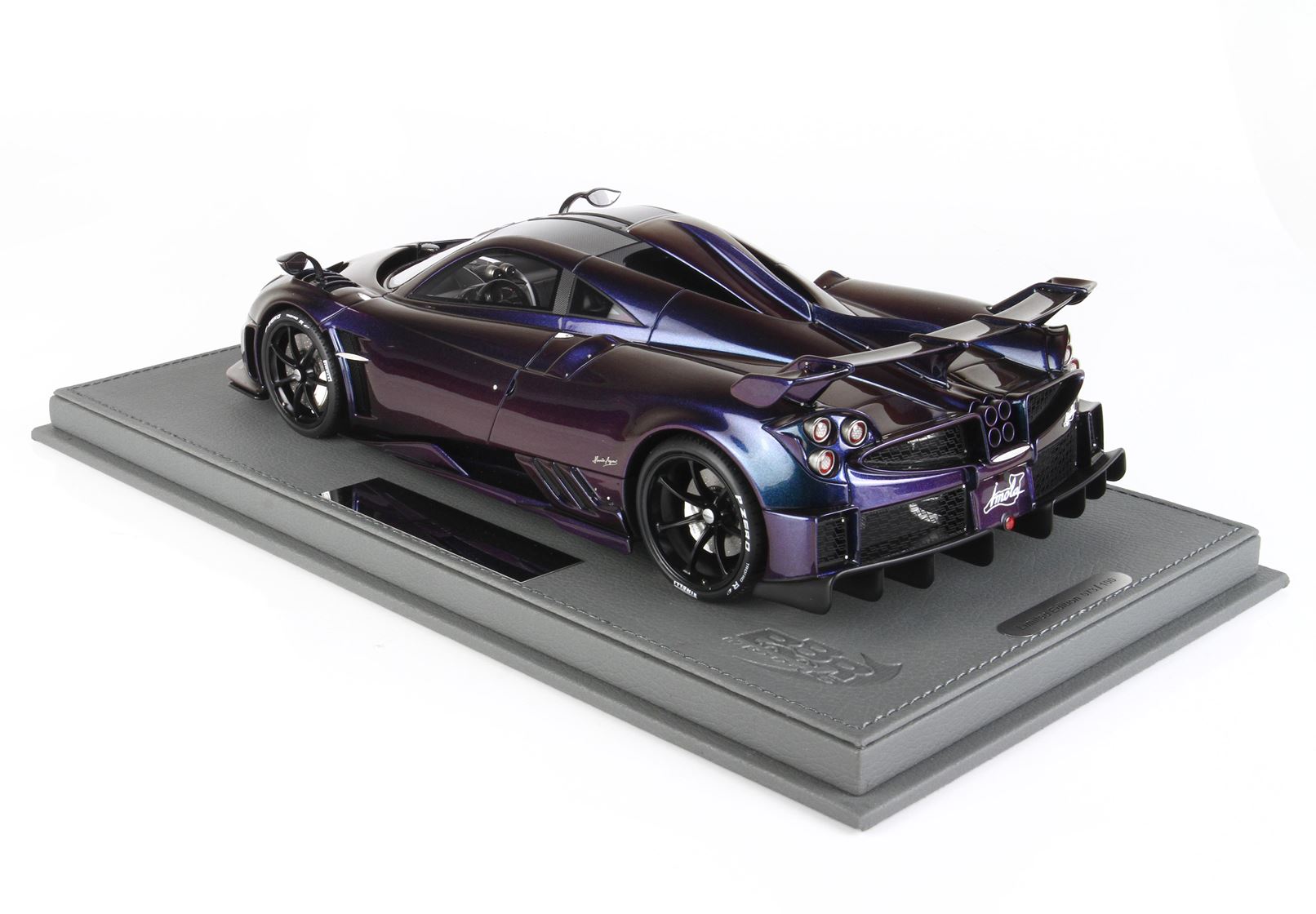 BBR ha realizzato questa vettura in scala 1/18 nel colore chamaleon ,un colore perlescente molto particolare e costoso ,interni fedelmente replicati , sedili bianco opaco , tutte le decals che replicano la fibra di Carbonio sono applicate a mano.