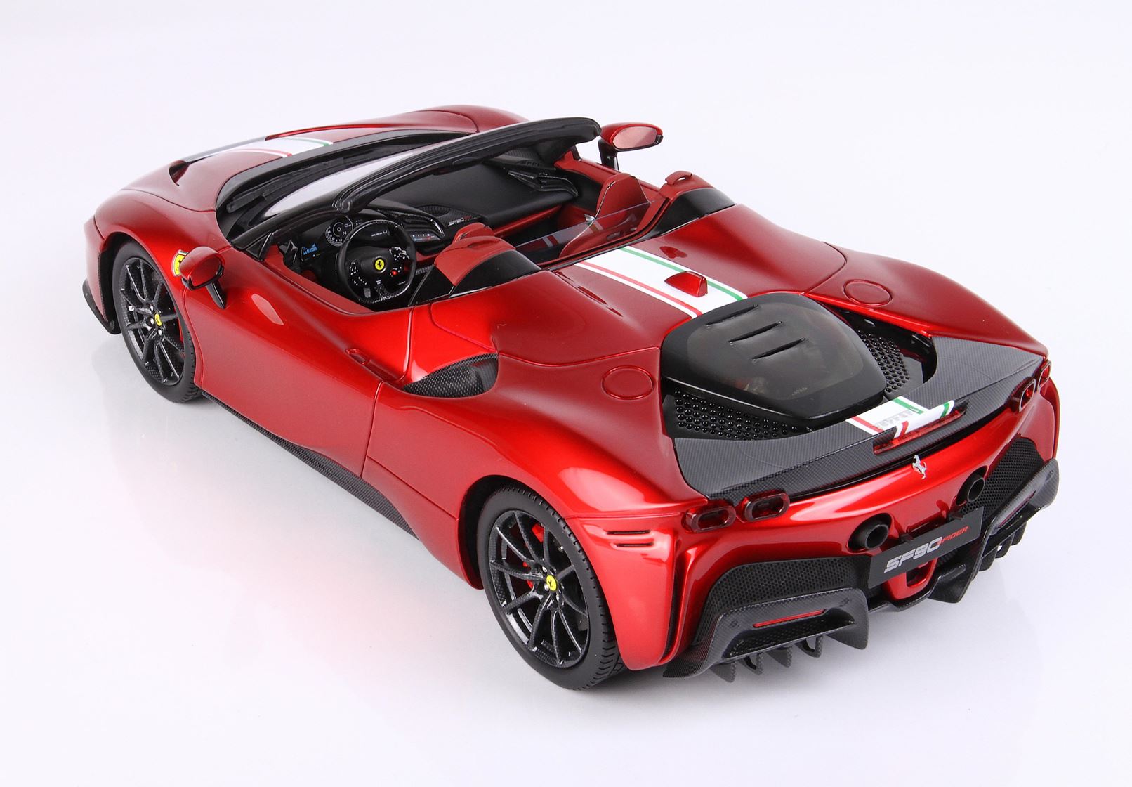 La SF90 Spider, prima spider PHEV di serie del Cavallino Rampante, si pone come nuovo riferimento in termini di performance e innovazione rispetto alla gamma Ferrari e alla produzione dell’intero settore automotive. La vettura eredita dalla SF90 Stradale la sua impostazione estrema e le sue prestazioni da primato, riuscendo nell’impresa di incrementarne il piacere di guida e la fruibilità grazie all’ultima versione del tetto rigido ripiegabile RHT. La SF90 Spider è quindi l’auto ideale per tutti coloro che aspirano al massimo livello di tecnologia senza rinunciare alla versatilità e alle emozioni di guida en plein air.