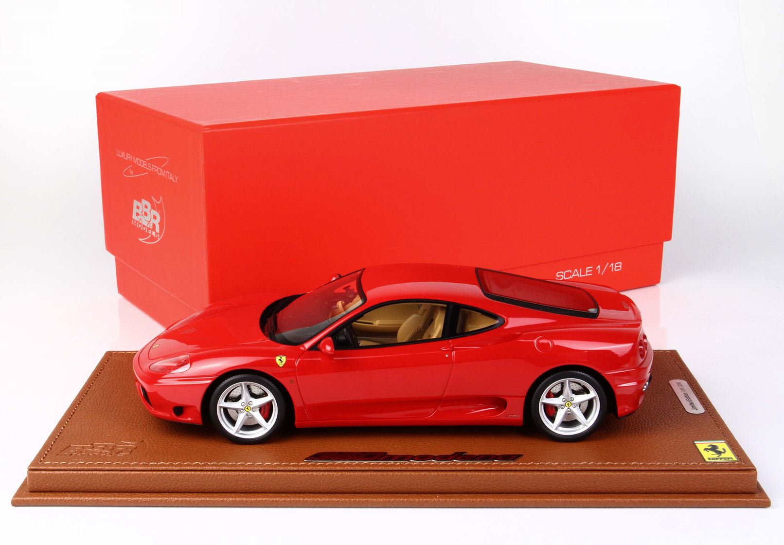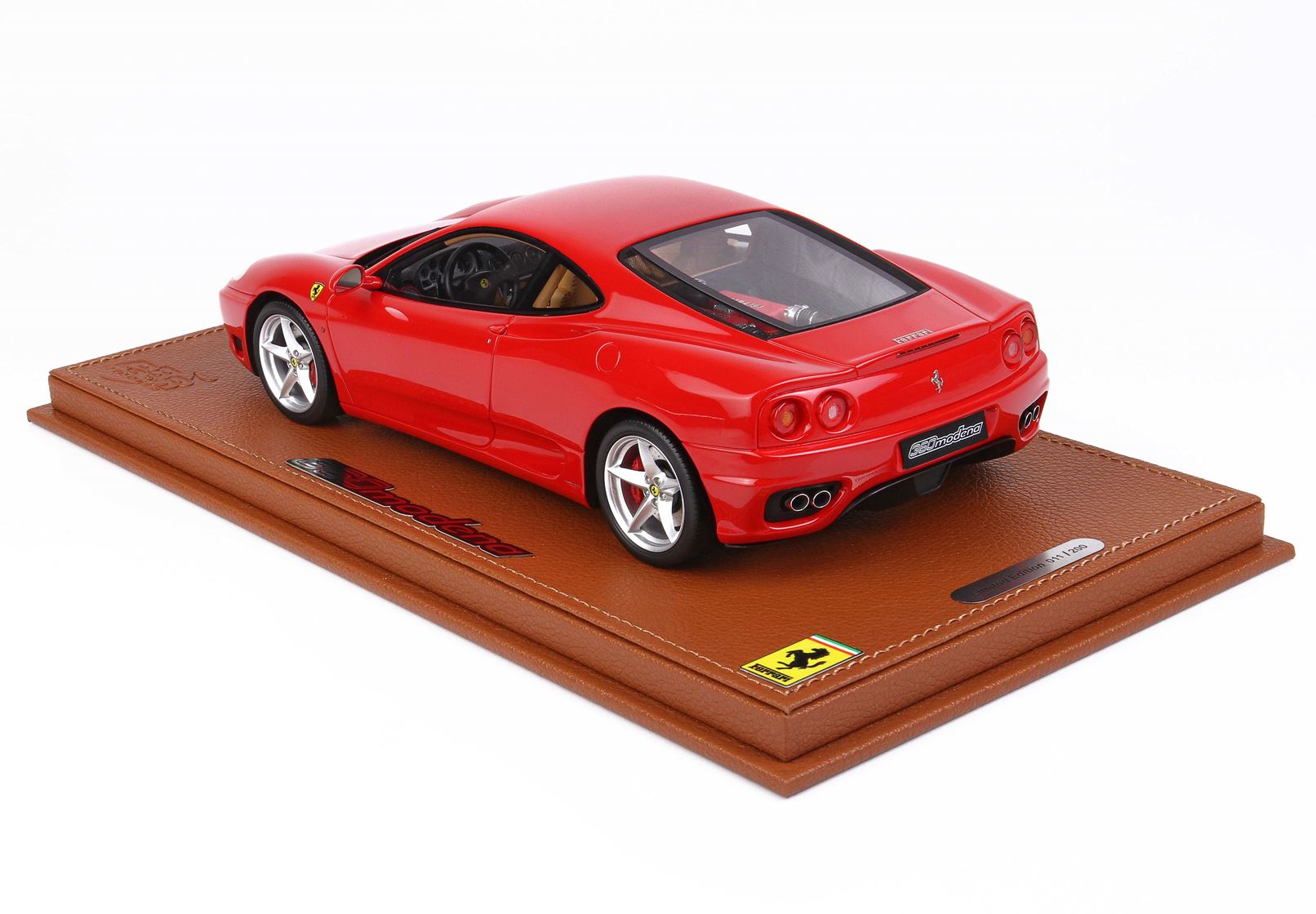 Colore rosso corsa, base in ecopelle cucita a mano con applicato logo ufficiale 360 Modena in acciaio.