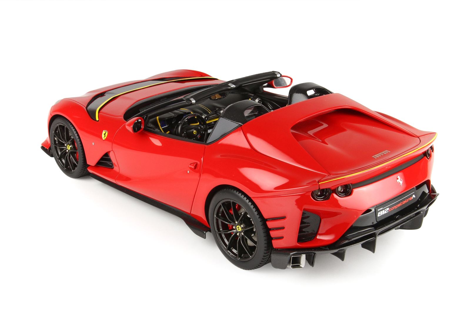 La 812 Competizione A, suggestiva spider ‘Targa’ in serie limitata, è un omaggio alla gloriosa tradizione delle scoperte del Cavallino Rampante e porta le specificità della 812 Superfast a un nuovo livello. La vettura incarna alla perfezione il DNA sportivo Ferrari e si alimenta dell’esperienza ultrasettantennale della Casa di Maranello sui circuiti di tutto il mondo, in un connubio perfetto tra prestazioni, forma e funzionalità. Dedicata a un ristretto gruppo di appassionati e conoscitori del Cavallino Rampante, è ricca di soluzioni tecniche estreme volte a garantire il massimo piacere di guida.