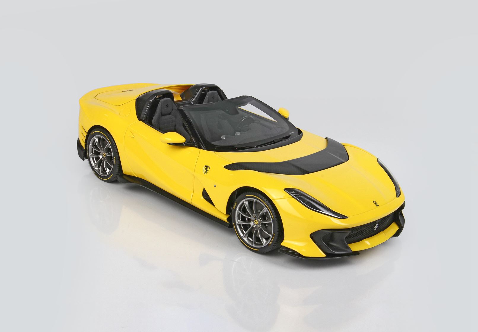 Fedele replica degli interni con speciale vernice tipo Alcantara e fedele replica delle parti in carbonio.