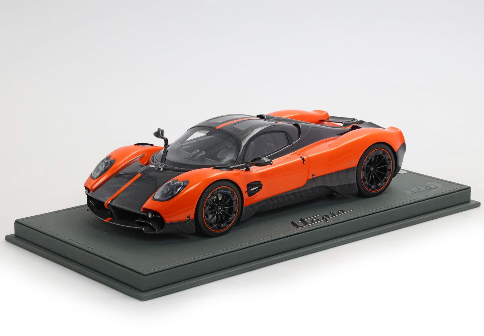 Il modello è stato verniciato con uno dei colori più amati da Pagani per le sue creazioni. L'arancio Marbella richiama i tramonti della Costa del Sol in Spagna e su questa utopia è alternato alle parti che replicano la fibra di carbonio con disposizione della trama a V.