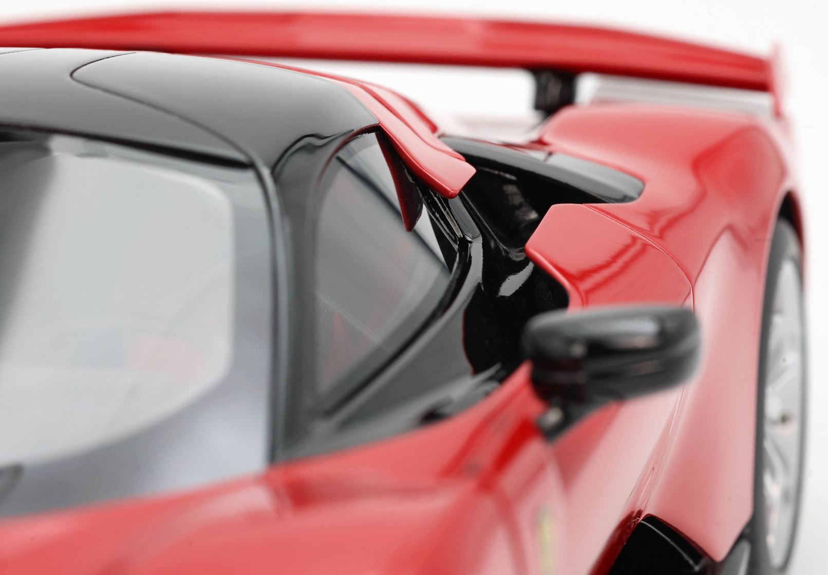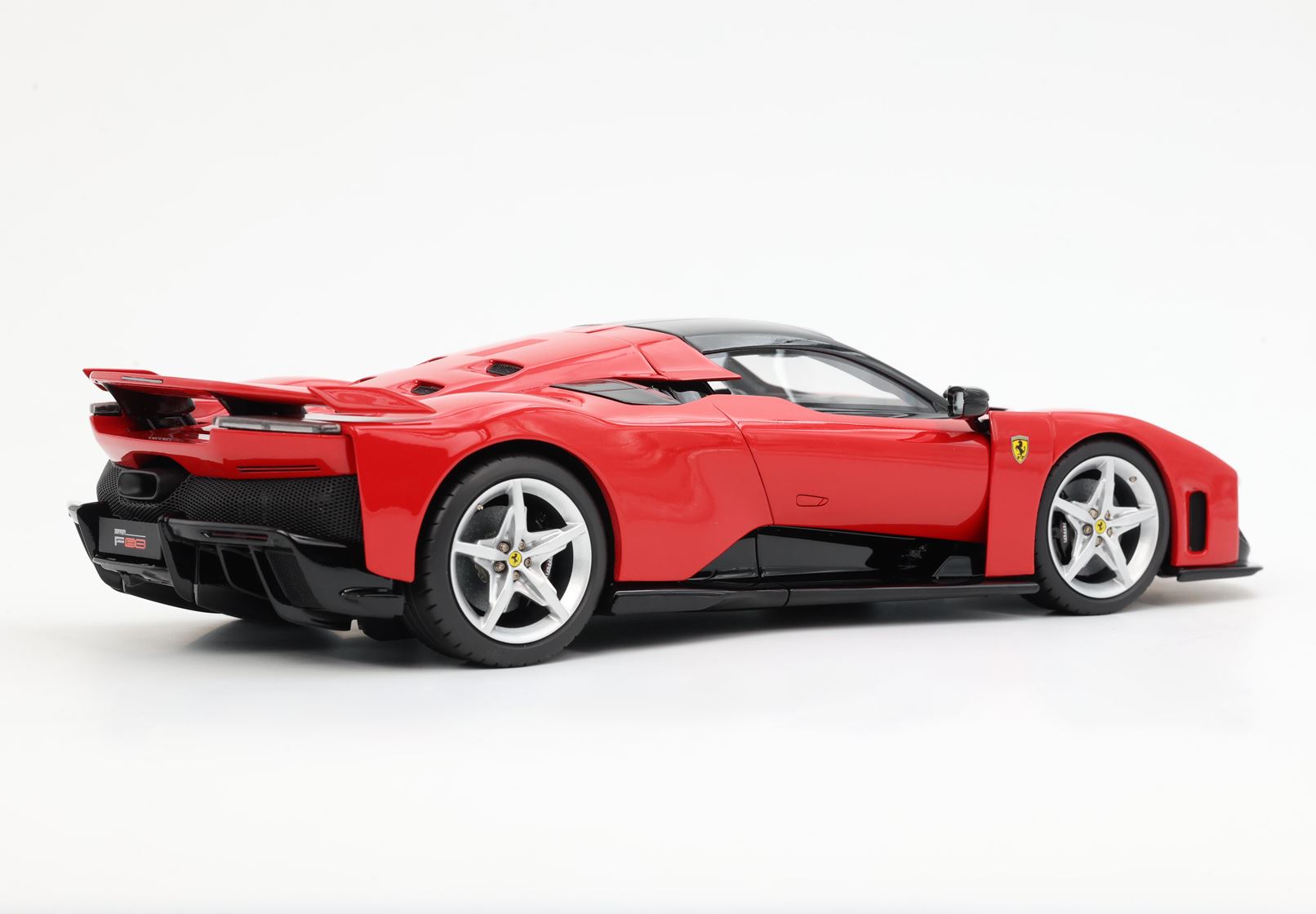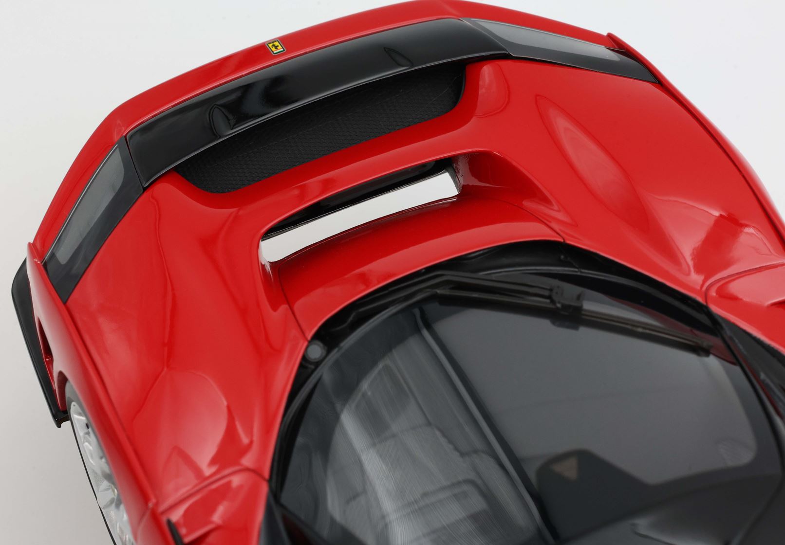Il generoso condotto S-Duct che caratterizza la parte centrale del cofano della F80 nasconde al suo interno un’ala a triplo elemento (triplano) che indirizza il flusso anteriore verso l’ala posteriore per generare il massimo carico aerodinamico. Il modello BBR in questa zona è aperto come nell'auto reale.