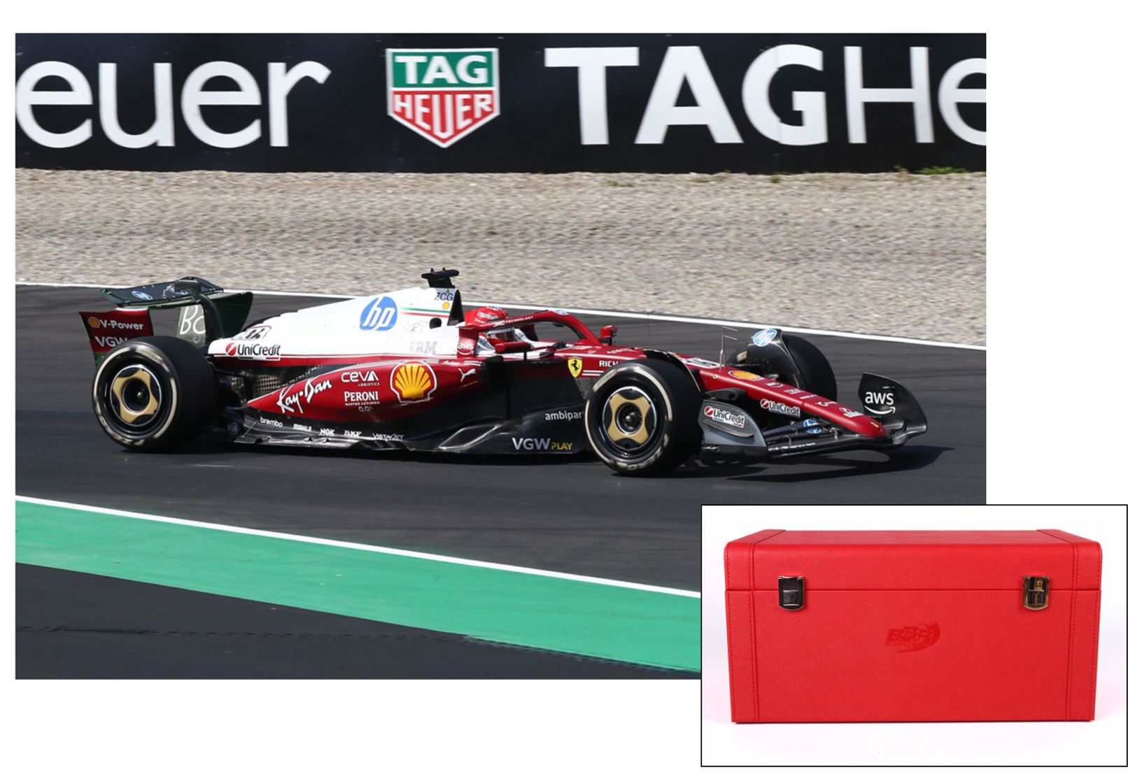 Questa livrea speciale, ispirata all'iconica 312 T, presenta una tonalità di rosso Ferrari simile a quella di 50 anni fa. Due strisce bianche longitudinali percorrono tutta la vettura fino ai numeri di gara neri in stile retrò su sfondo bianco rettangolare. L'ala posteriore argento metallizzato, richiama l'auto campione di Lauda come il cofano motore bianco. Infine i cerchi con un design ispirato a quelli dell'epoca del 1975.