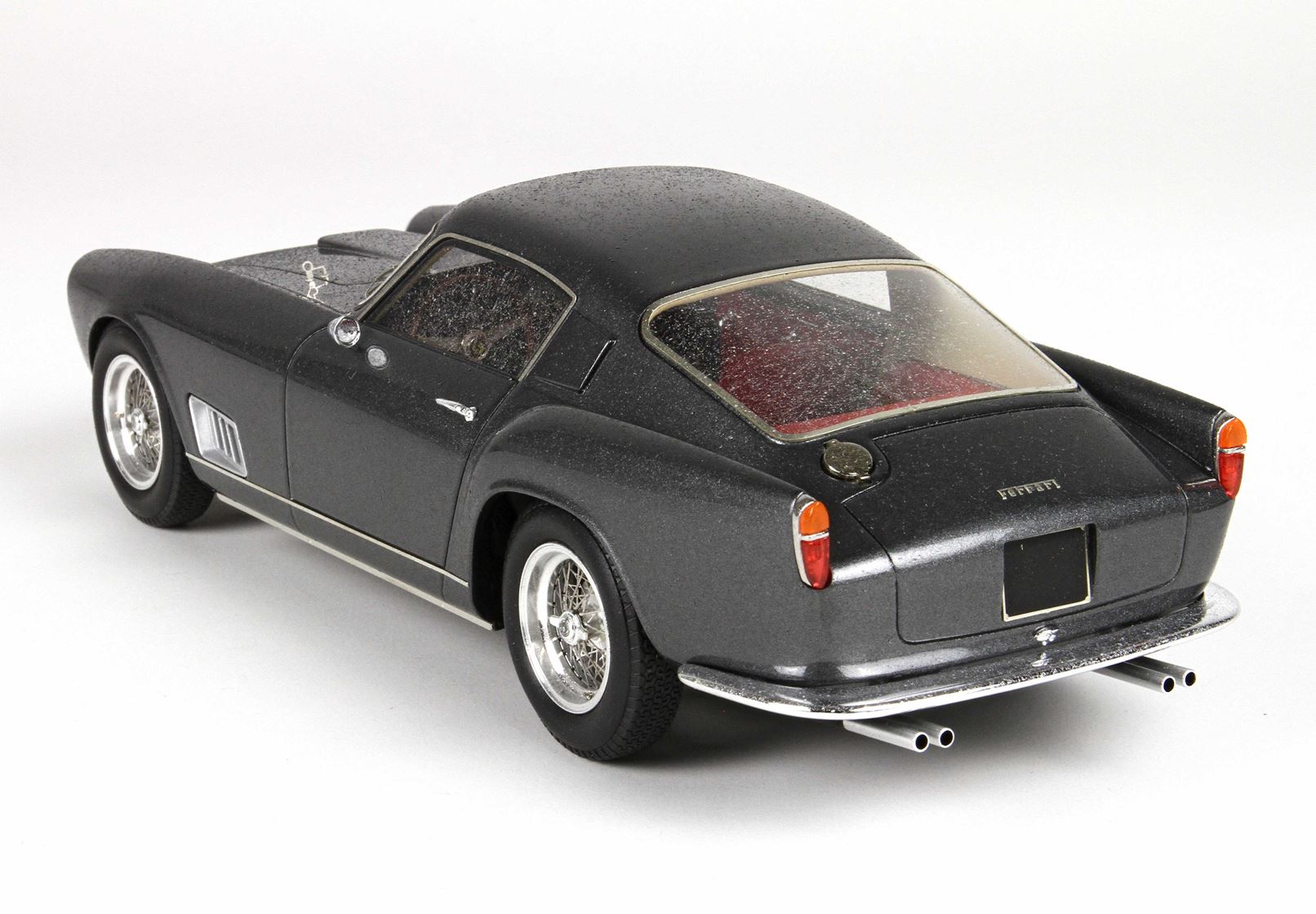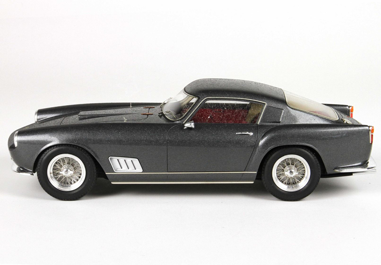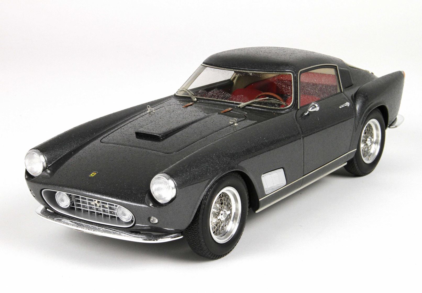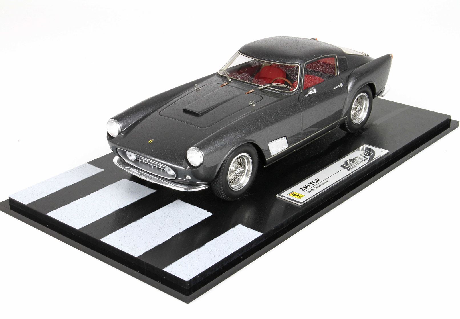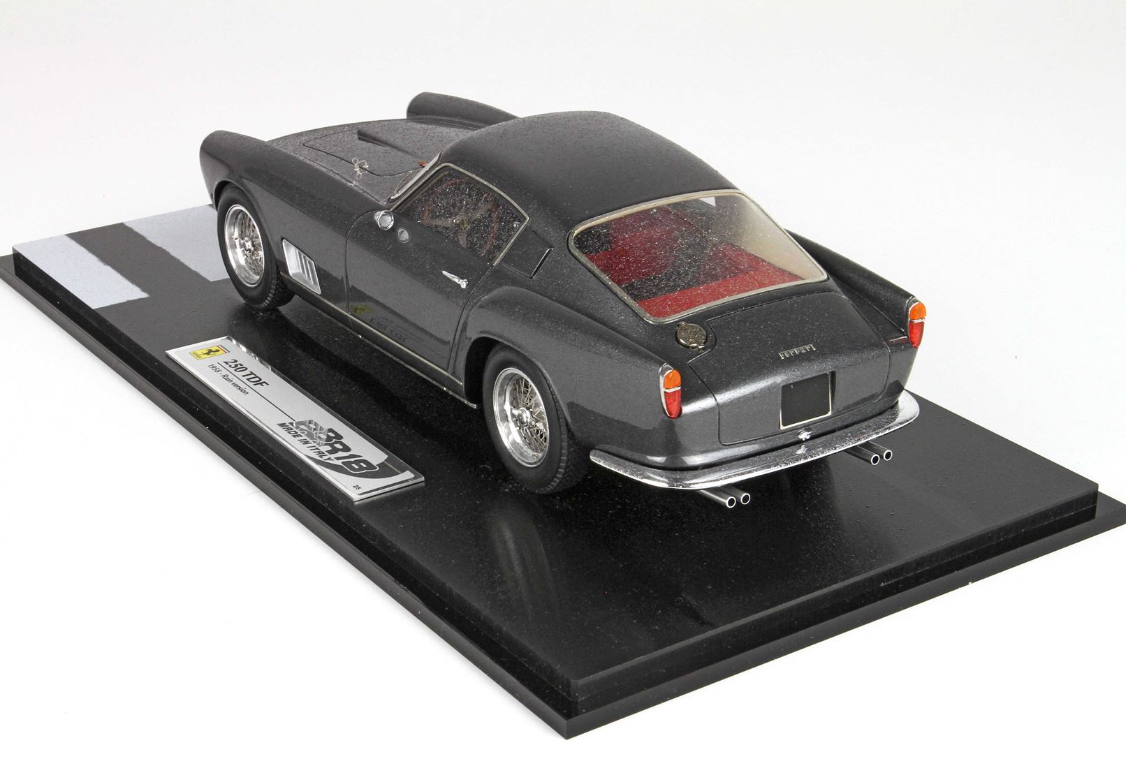 In questo automodello i pararti sono di vero metallo cromato, i cerchi sono in vero alluminio tornito, i raggi delle ruote sono in vero acciaio, tutte le strumentazioni interne sono ricoperte da vetro come sull’auto vera.