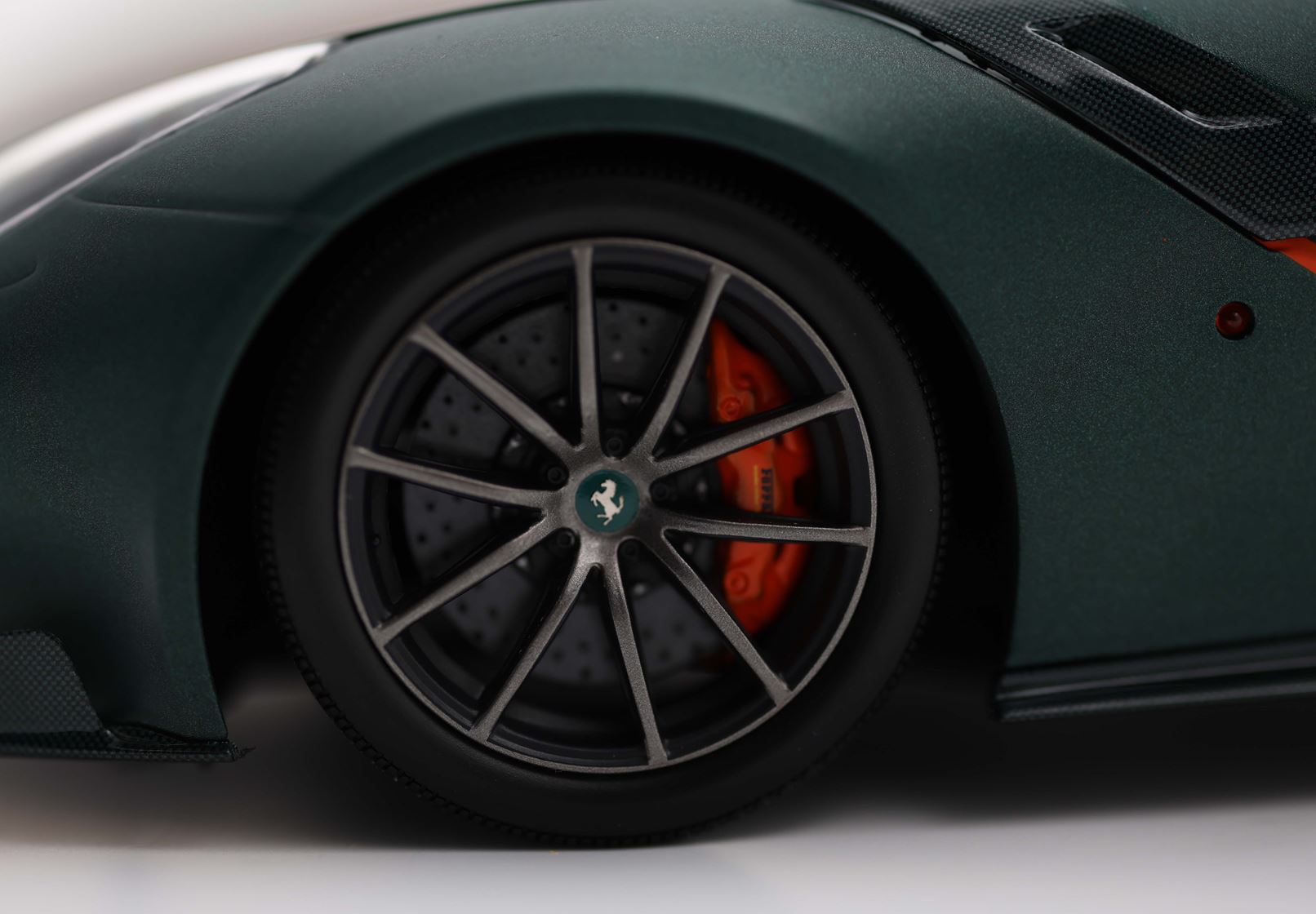 Matt green body paint, with external carbon fiber replicated in green.