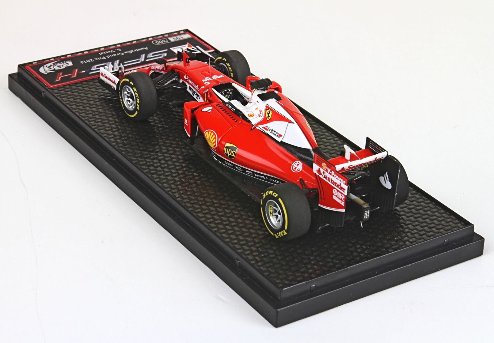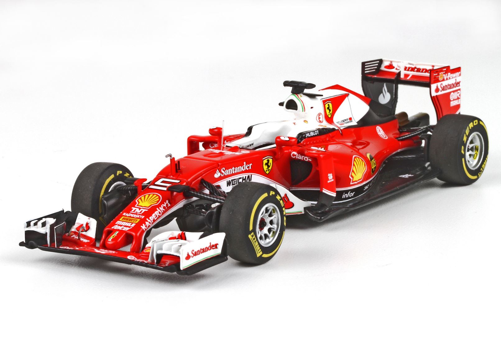 The SF16-H is notable for its predominantly red and white livery, similar to that used on the 312T and F93A