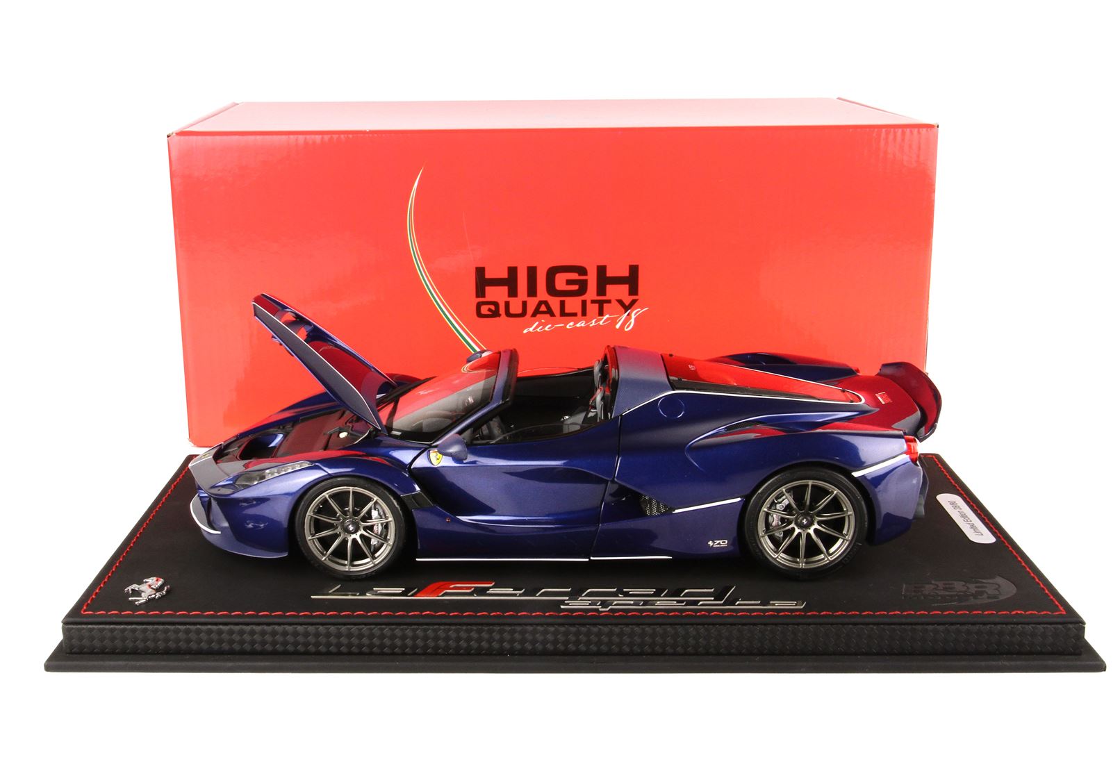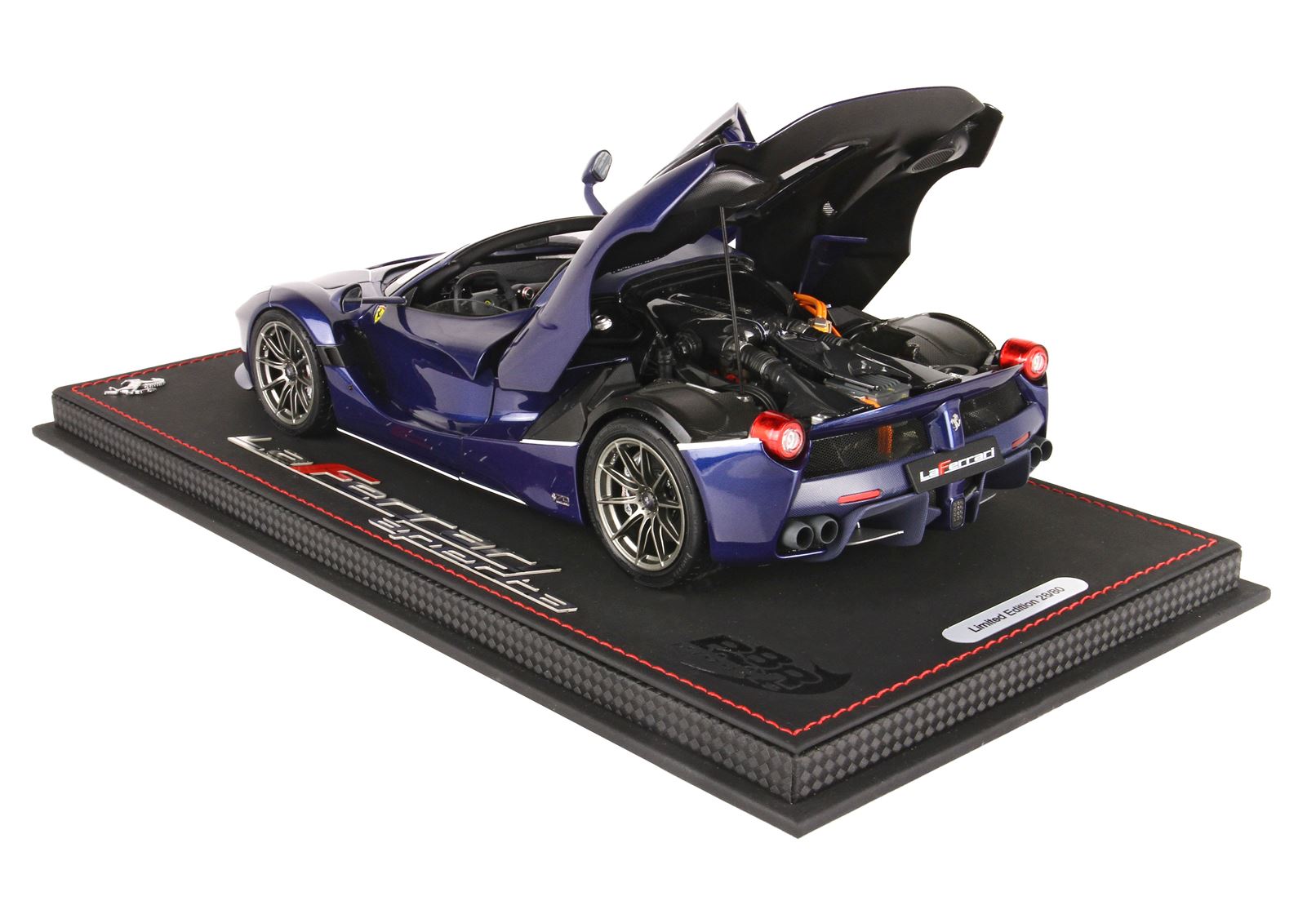 Automodello venduto su base in tessuto tecnico, cucito a mano e logo ufficiale LaFerrari Aperta in acciaio.