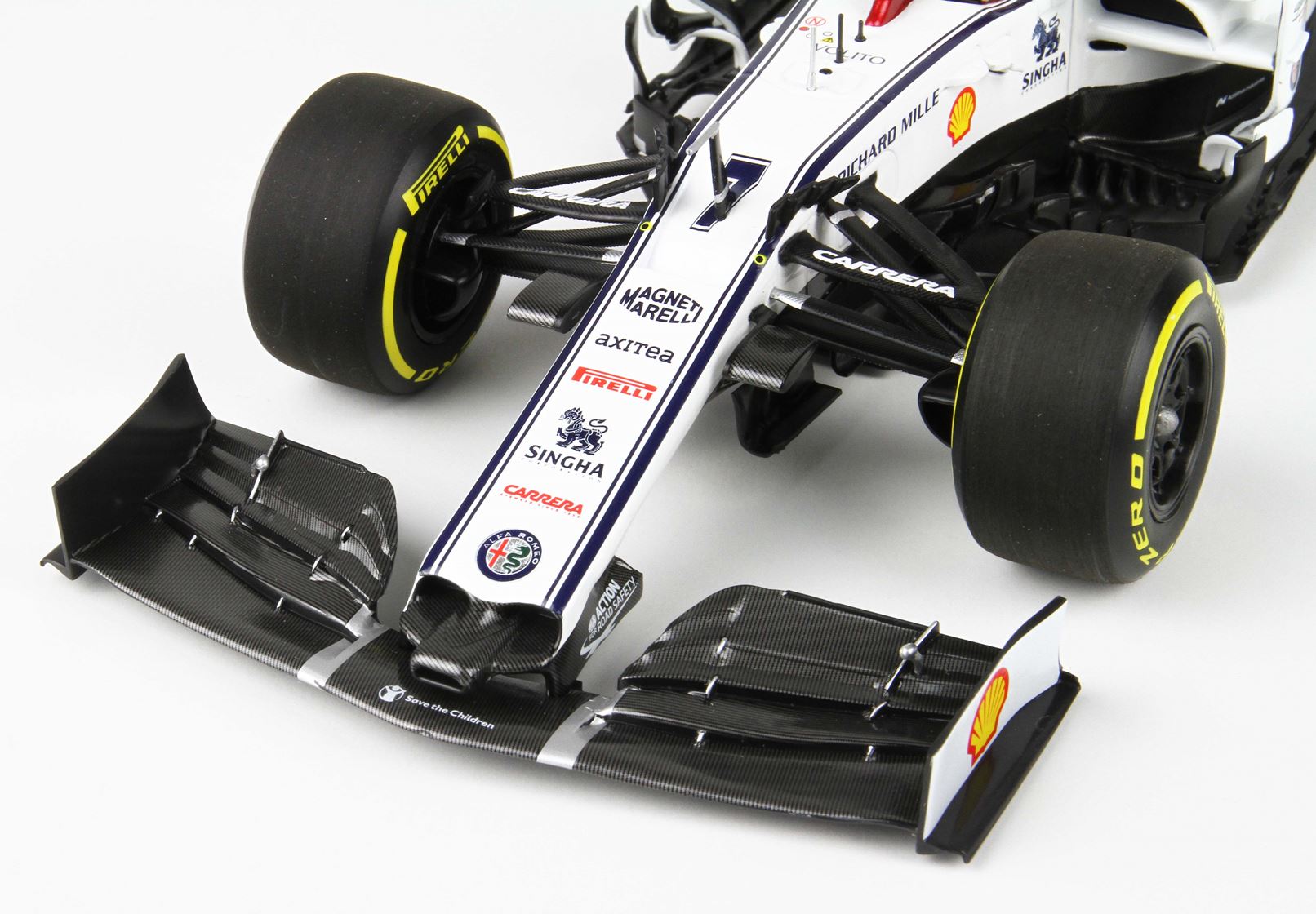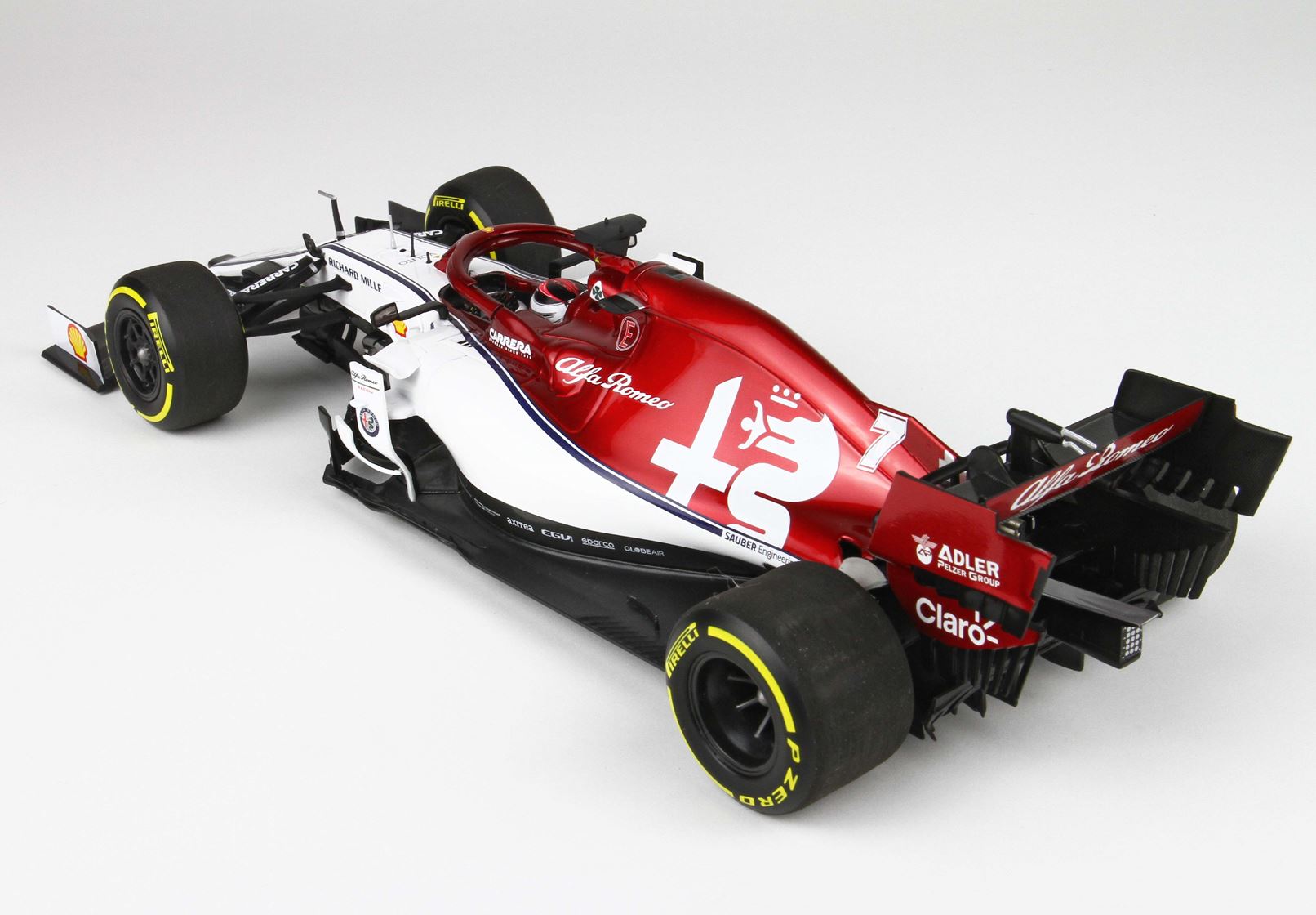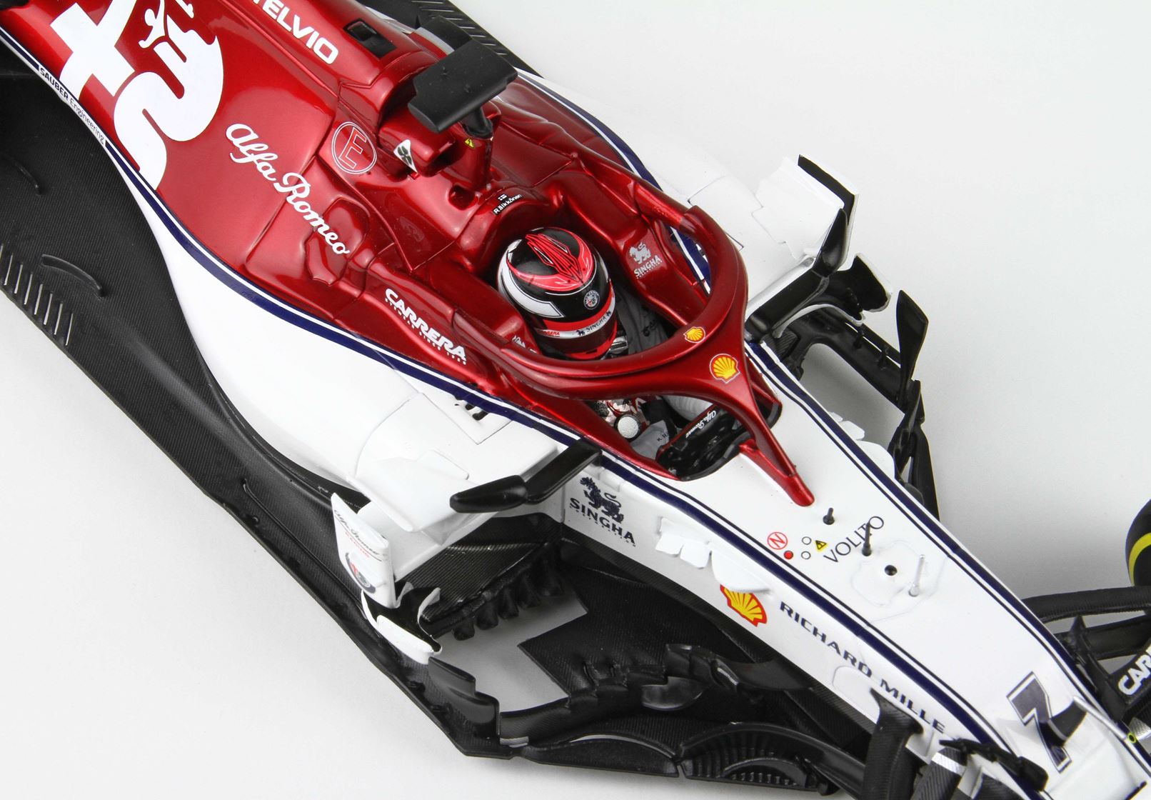 Un pilota esperto e famoso è seduto in questa bellissima monoposto.