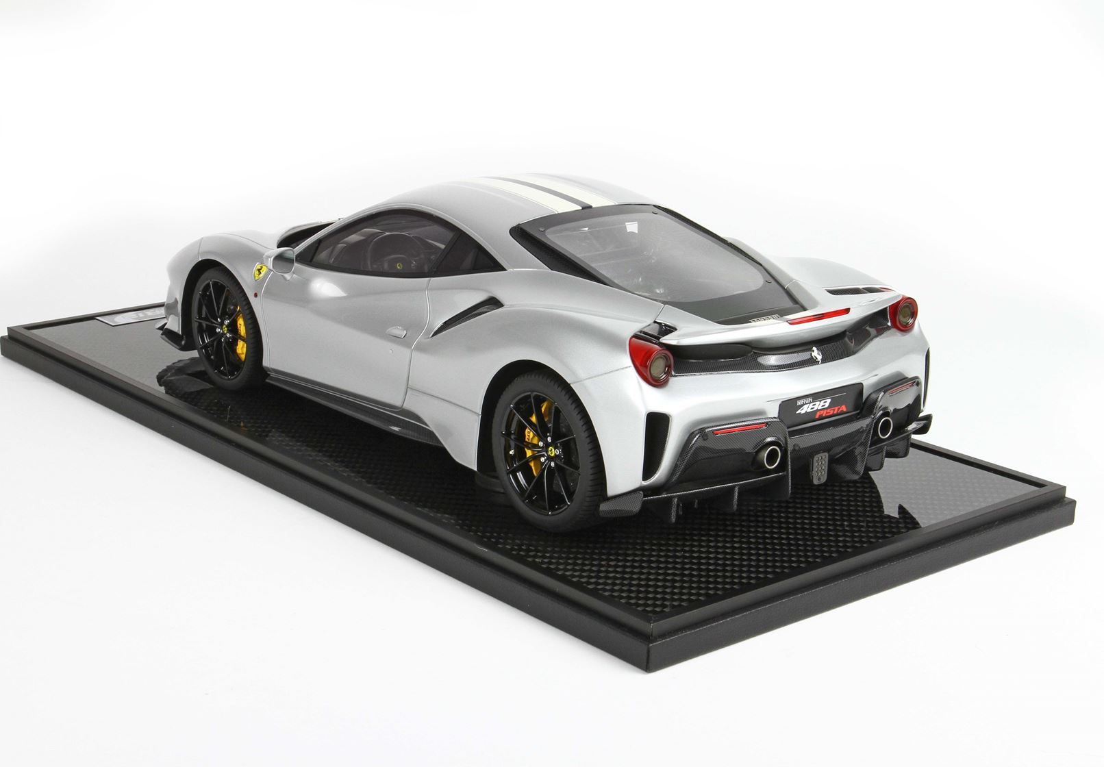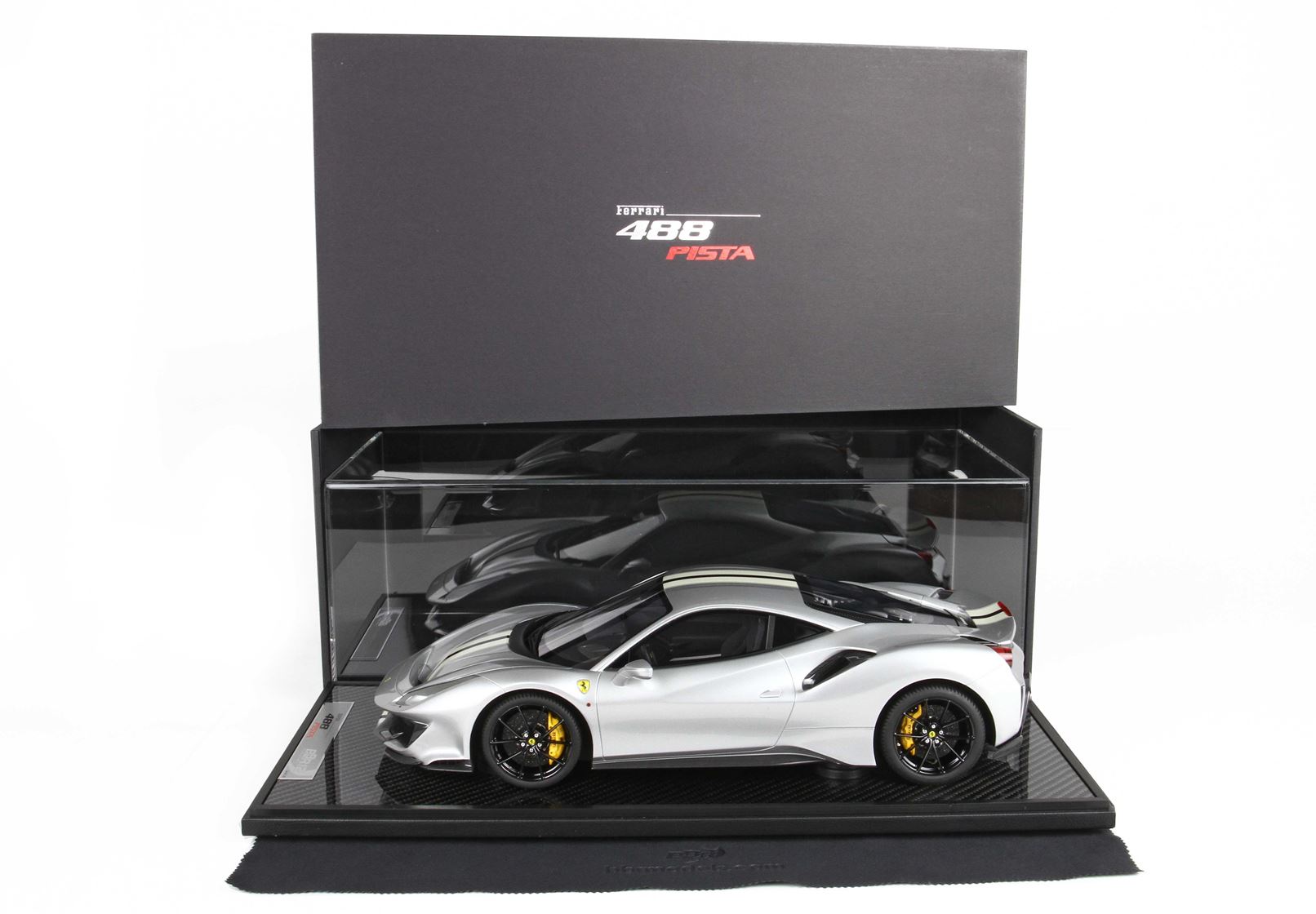 Il modello è confezionato su Base in vero Carbonio e vetrina in plesiglass fatta a mano.