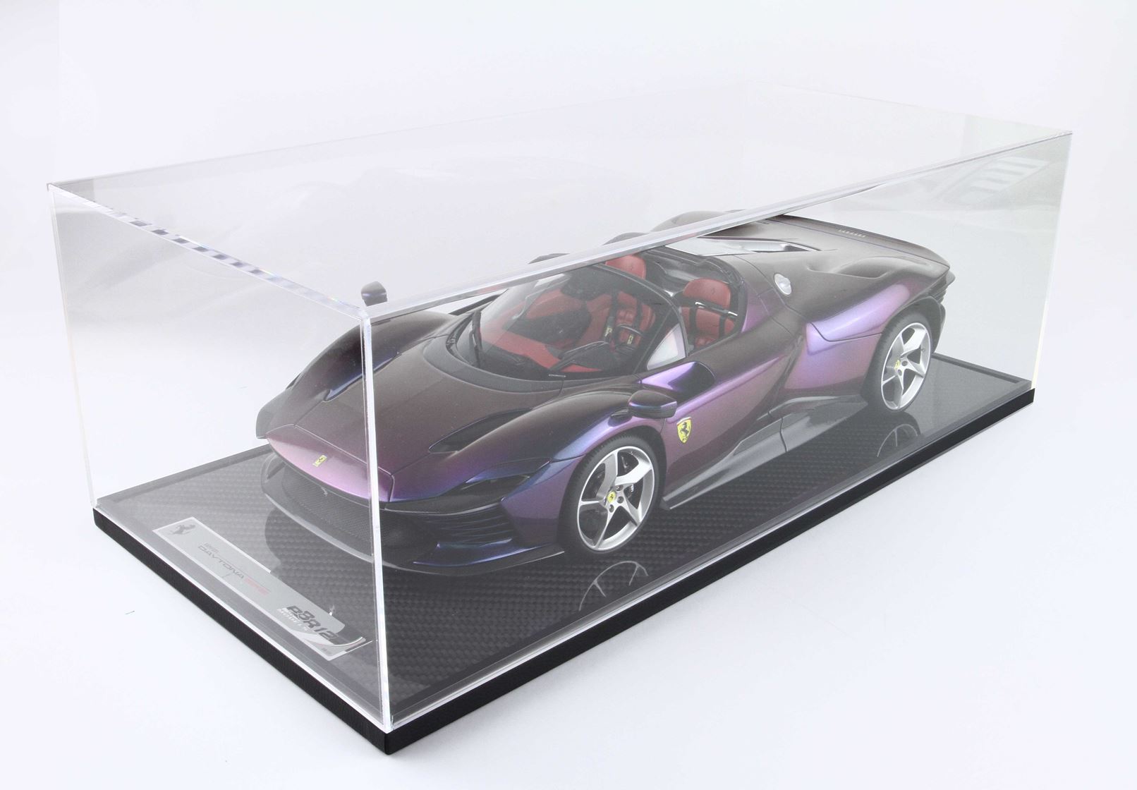 La base su cui è confezionato il modello è vero Carbonio, vetrina in plexiglass per una protezione perfetta.