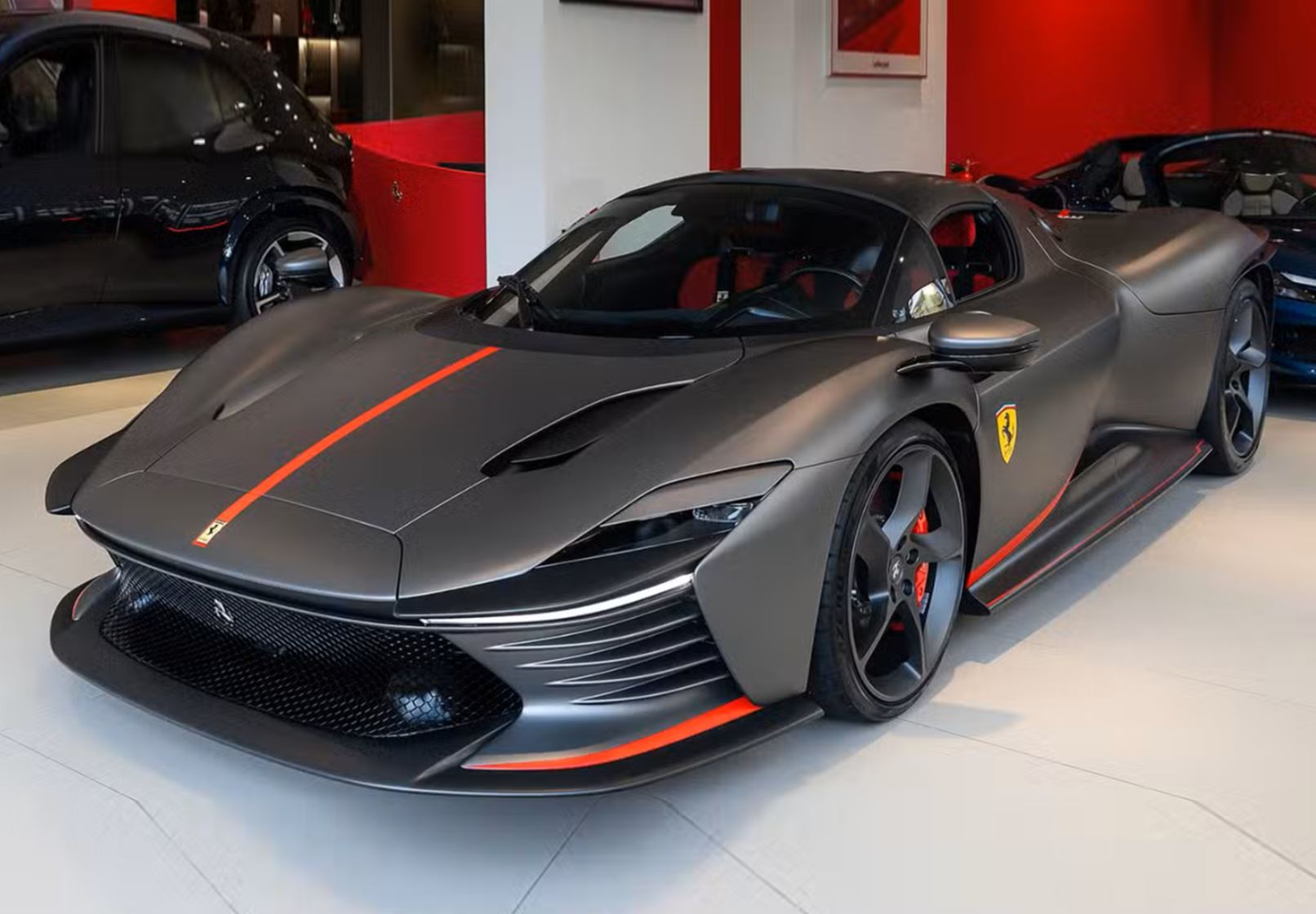 Sainz ha personalizzato la sua Ferrari SP3 spider con un colore opaco molto particolare con dettagli rosso corsa.