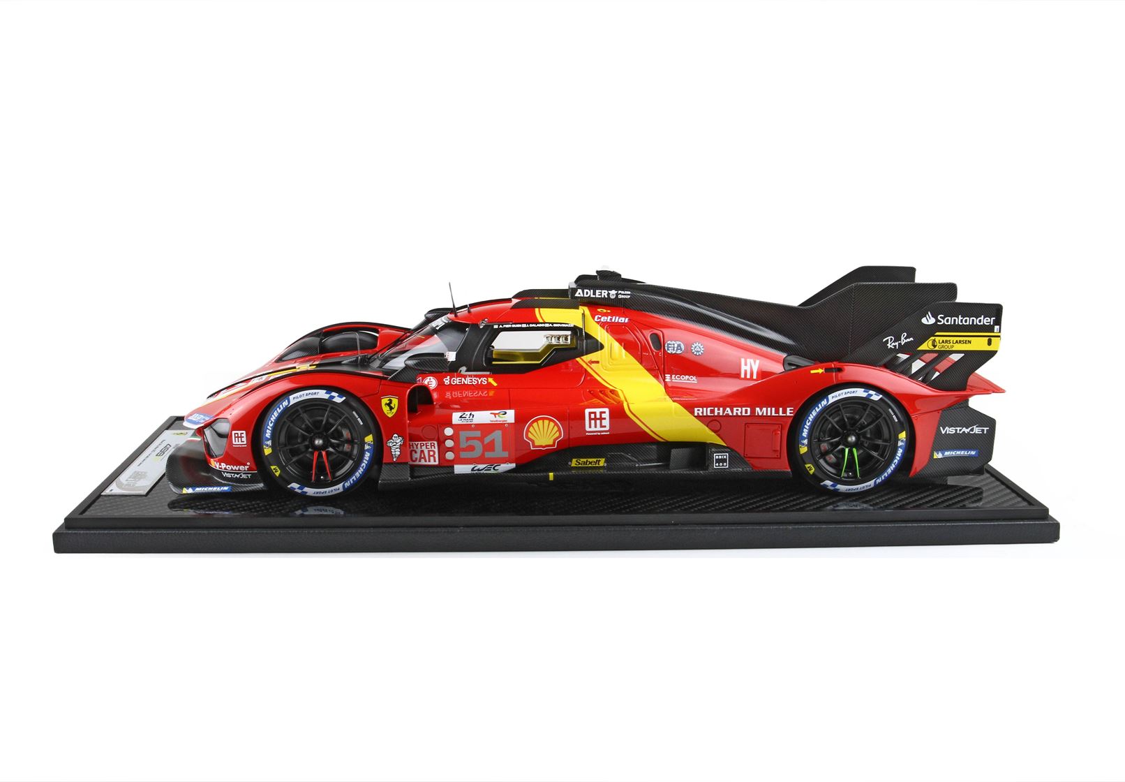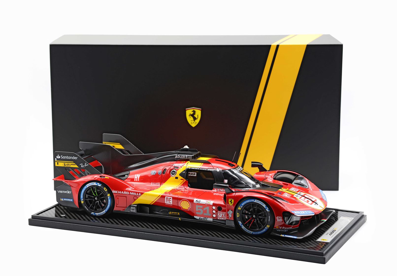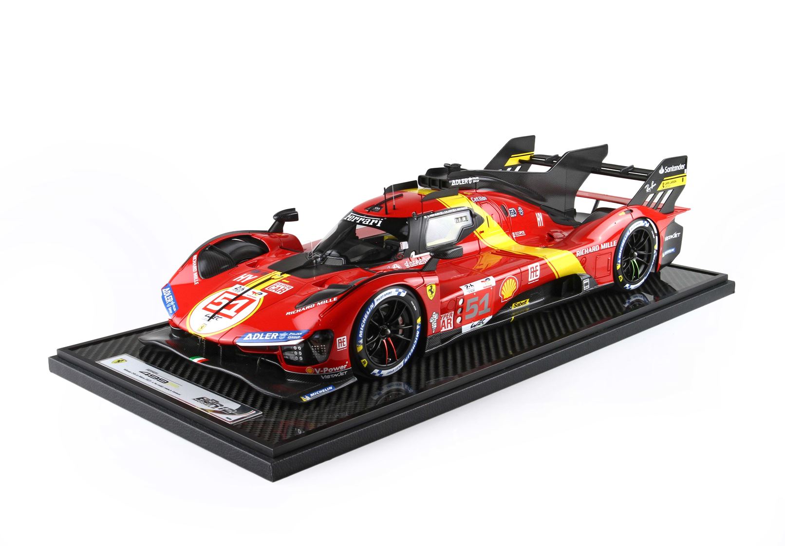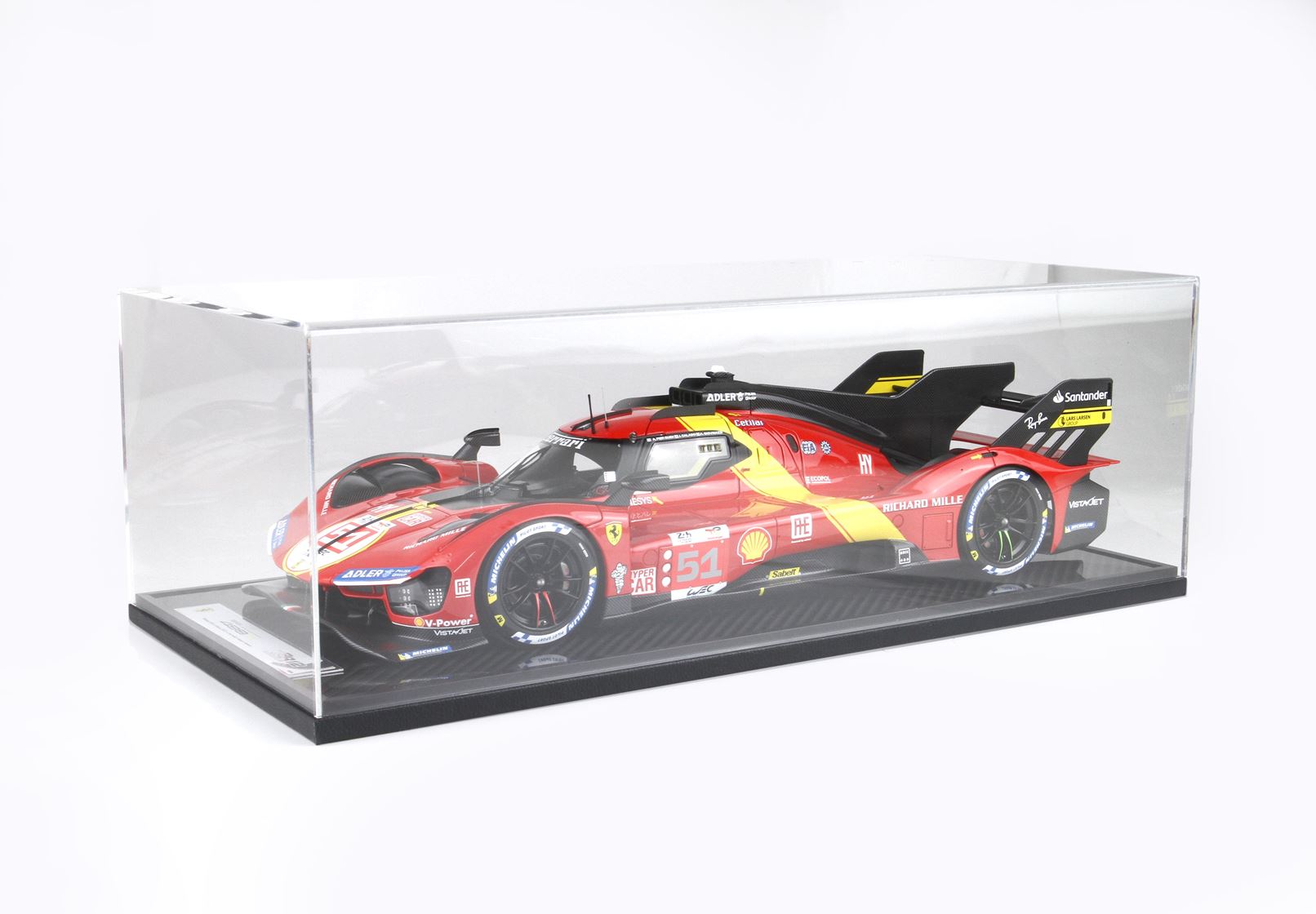 Il modello sarà venduto su base in vero Carbonio e vetrina in puro plexiglass realizzata a mano con scatola personalizzata 449P.