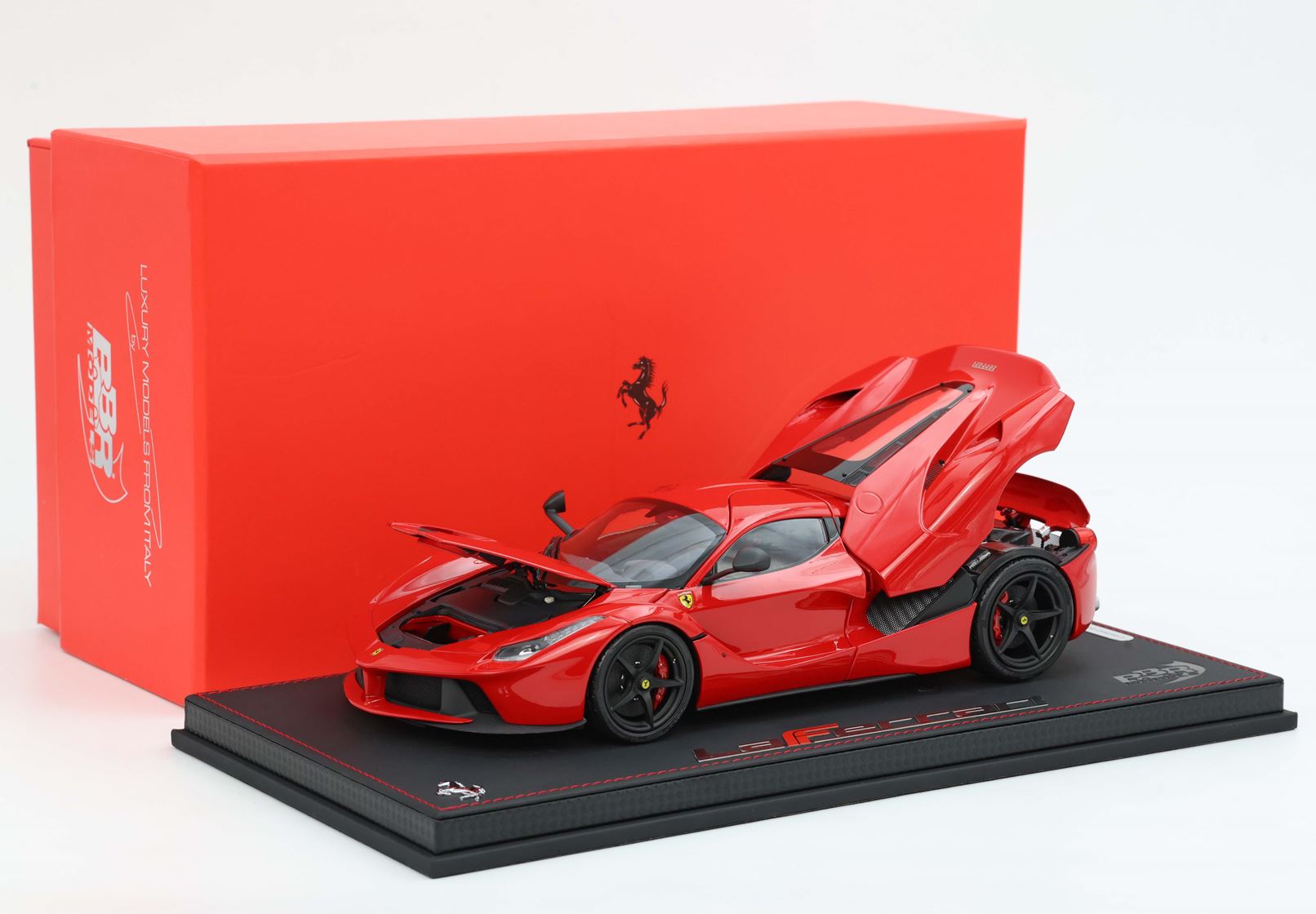 In questo automodello in metallo die cast, a seguito di un lungo studio ingegneristico, BBR ha realizzato portiere e cofano apribili. I giunti invisibili del cofano motore sono soluzione unica grande innovazione nel mercato dell'automodellismo. Lo stesso vale per il pistone telescopico che consente l'apertura delle portiere ad ali di gabbiano come sull'auto vera, un dettaglio davvero esclusivo.