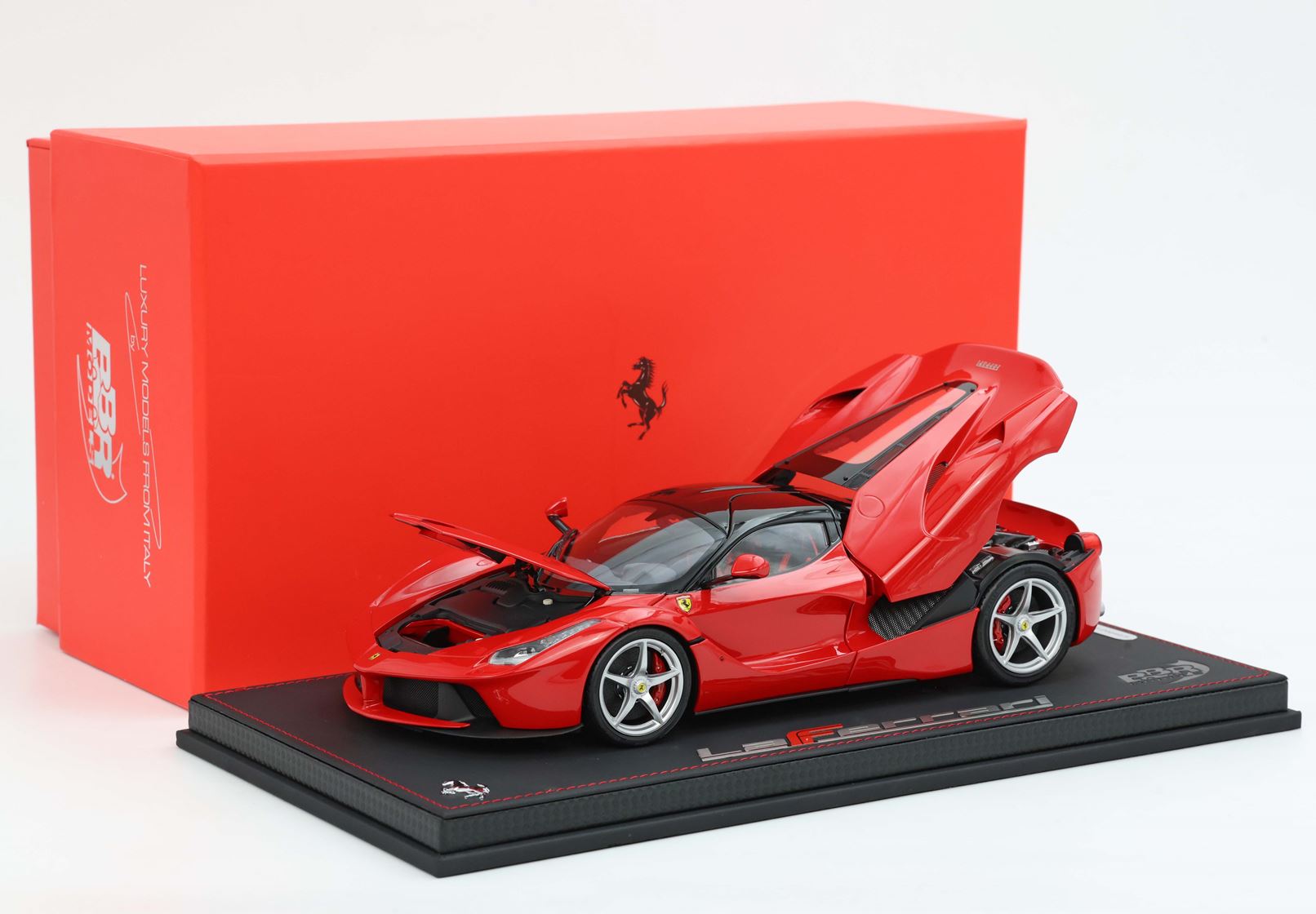 In questo automodello in metallo die cast, a seguito di un lungo studio ingegneristico, BBR ha realizzato portiere e cofano apribili. I giunti invisibili del cofano motore sono soluzione unica grande innovazione nel mercato dell'automodellismo. Lo stesso vale per il pistone telescopico che consente l'apertura delle portiere ad ali di gabbiano come sull'auto vera, un dettaglio davvero esclusivo.