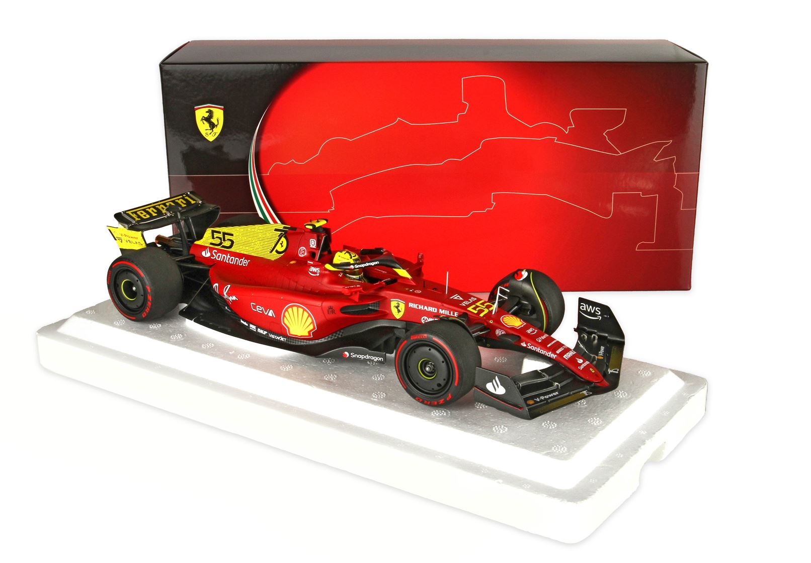 La livrea della vettura, così come le tute e i caschi dei piloti Charles Leclerc e Carlos Sainz, erano di colore giallo per celebrare le origini della casa automobilistica attraverso uno dei colori fondamentali della Ferrari.
