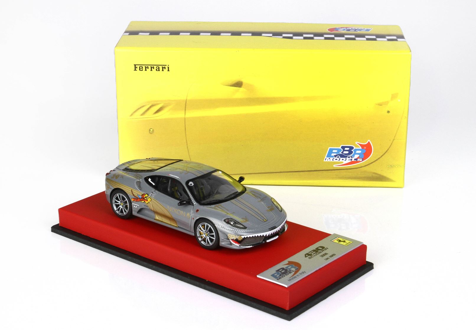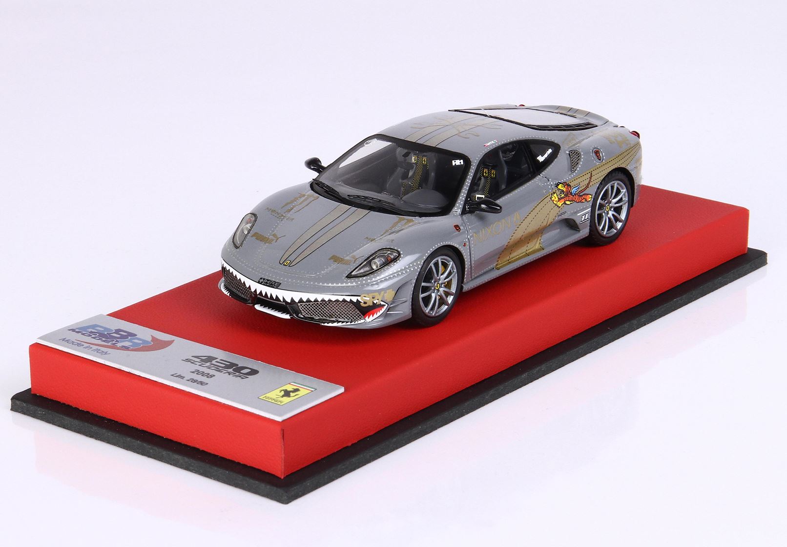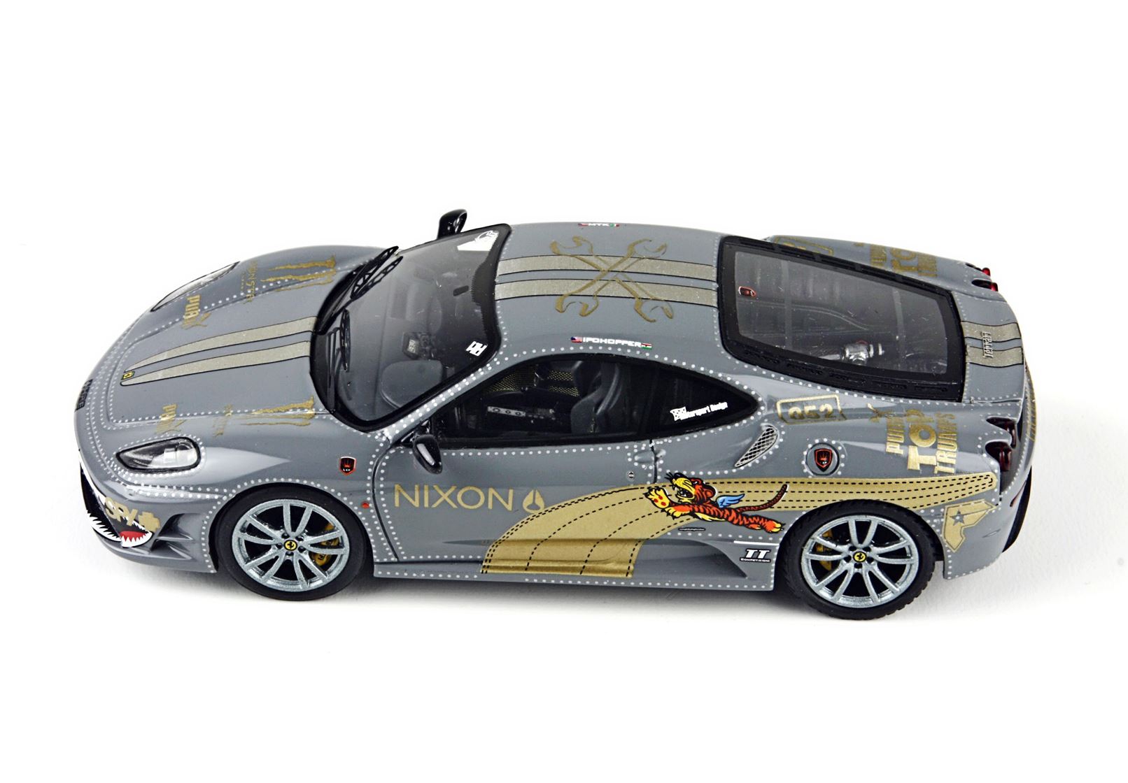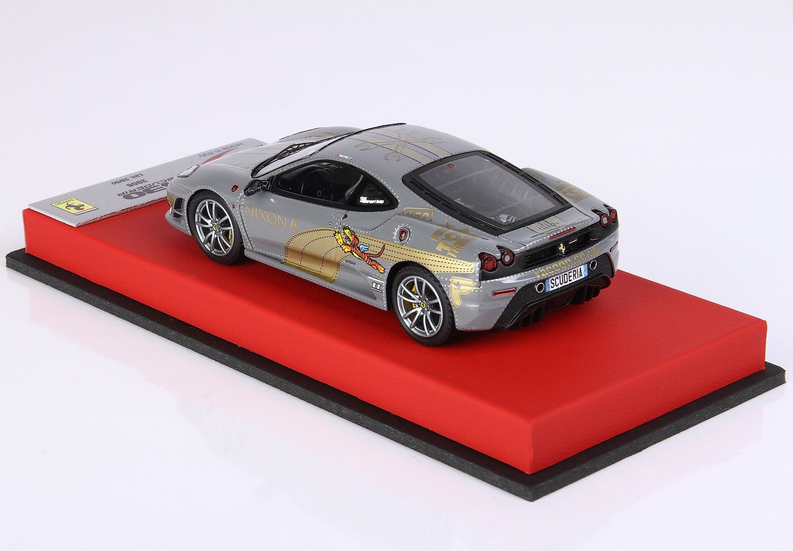 Riproduzione di una F430 Scuderia che ha partecipato alla Gumball 3000, un rally non competitivo di 3000 miglia che si svolge annualmente su strade aperte al traffico, generalmente in sei giorni.