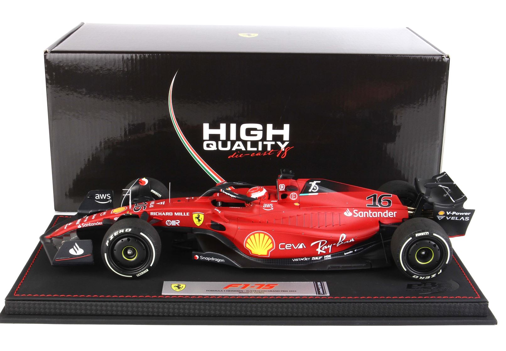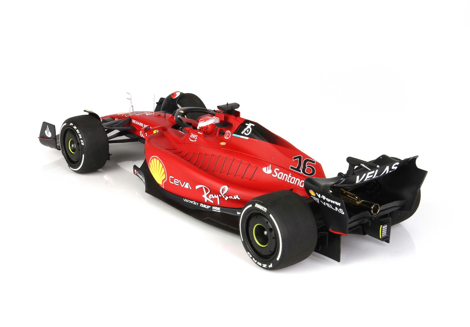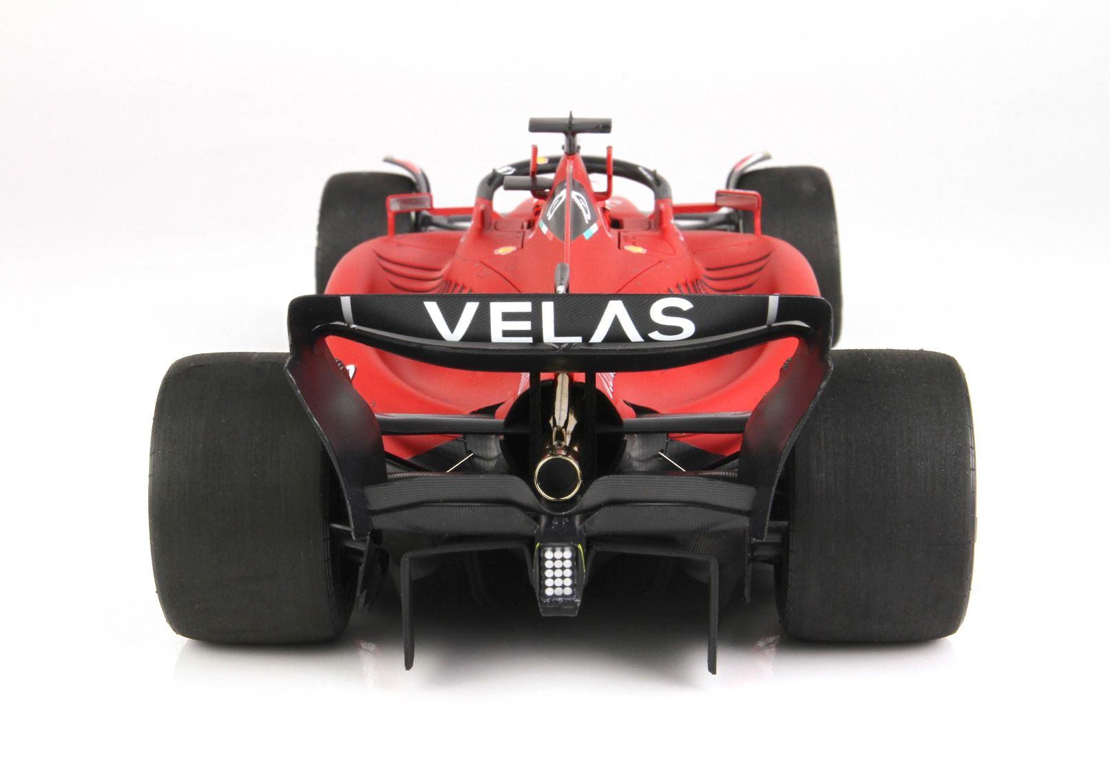 Colore rosso F1-75. Le ruote hanno la scritta Pirelli Bianca come quando è stato tagliato il traguardo.