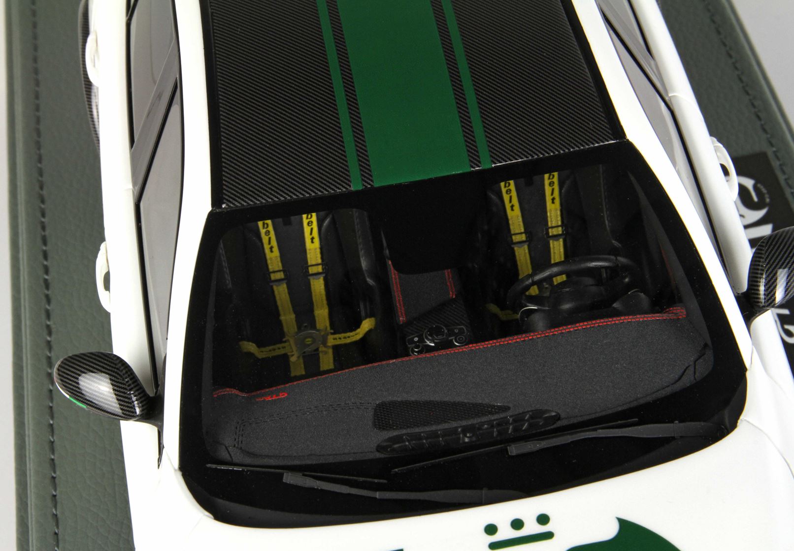 Questo automodello è rivestito tutto a mano con replica decals fibra di Carbonio, dopo è stato verniciato con lucido trasparente.