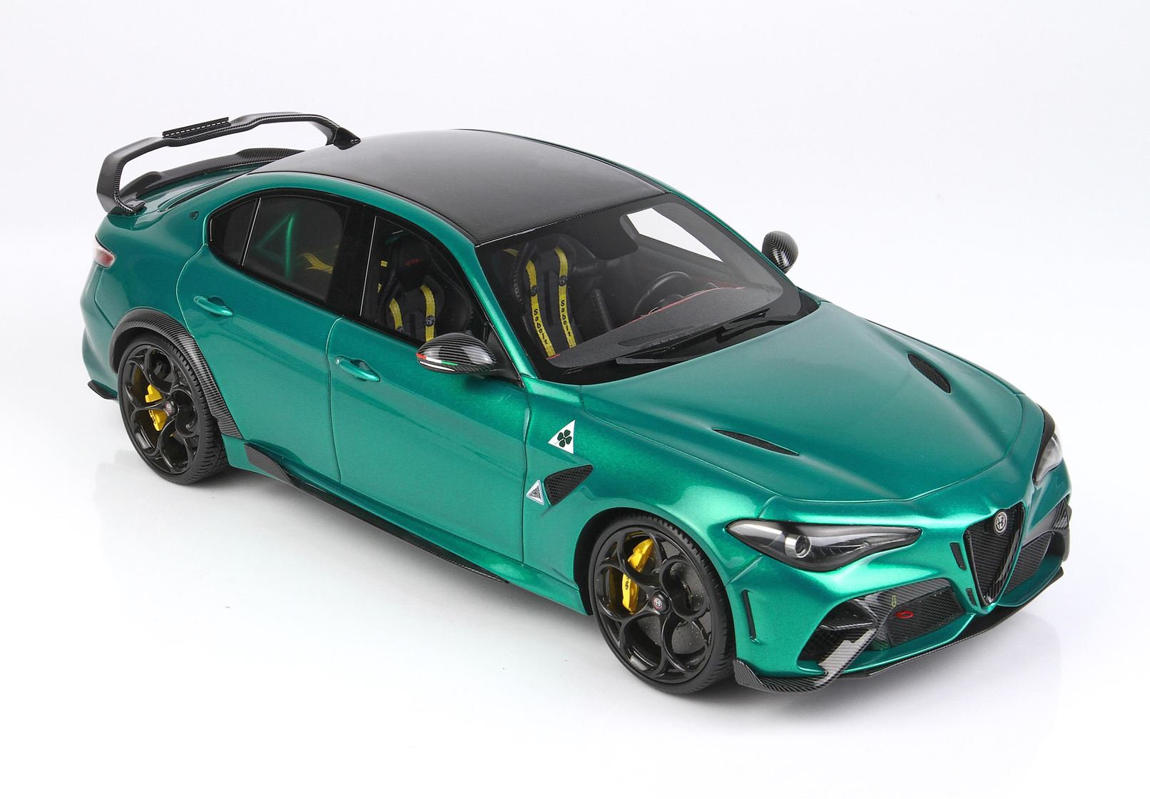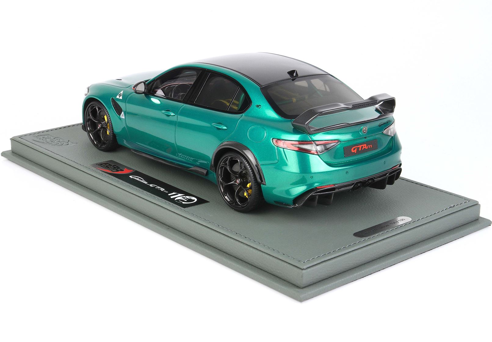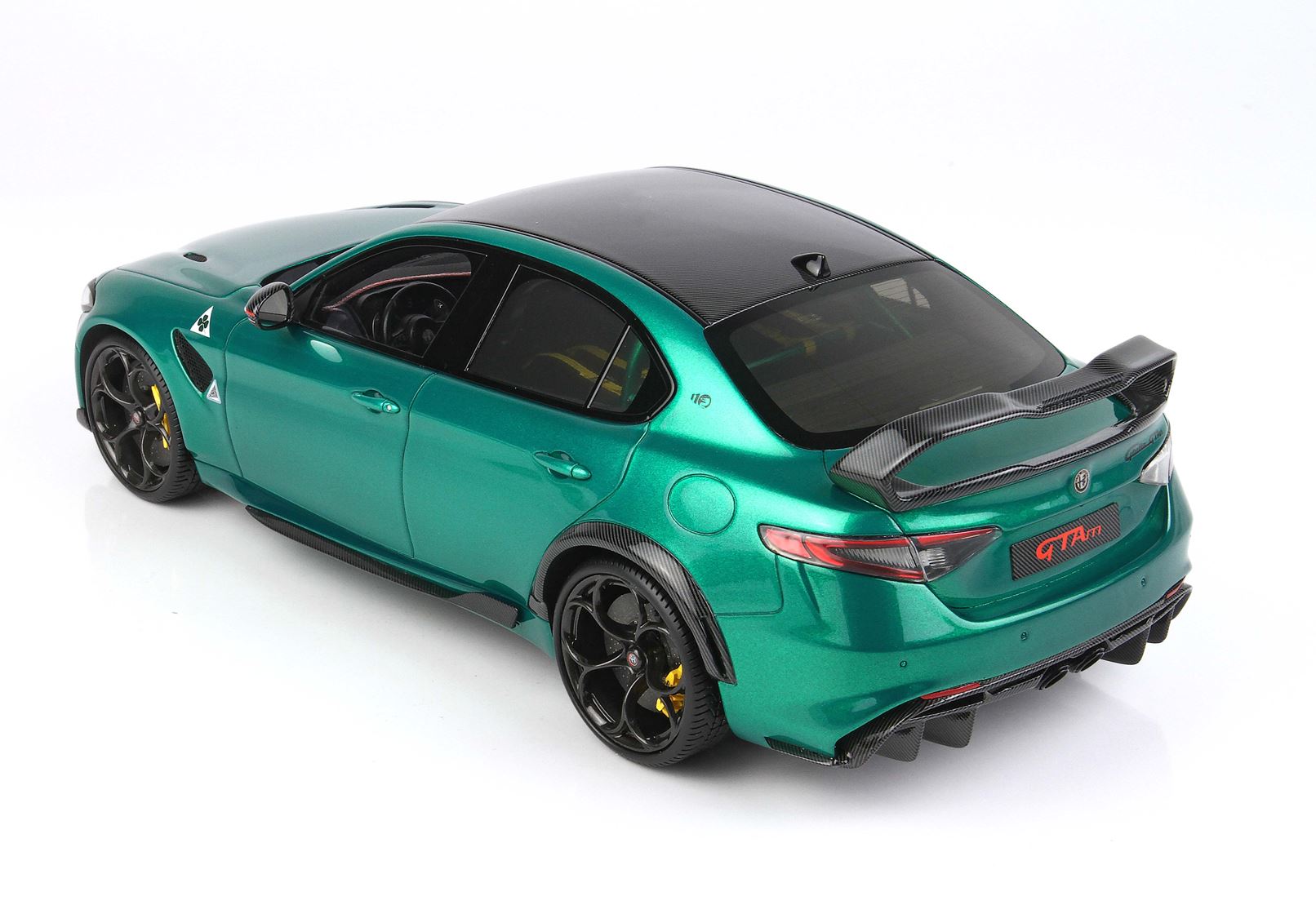 la GTAm: la variante più spinta dell’attuale gamma del Biscione, oltre al frontale specifico con splitter attivo e all’ala posteriore di fibra di carbonio, è caratterizzata da diverse soluzioni derivate dal mondo delle competizioni. La Giulia GTAm è caratterizzata dalla presenza di due soli sedili: il divano posteriore è stato sostituito da un roll bar, sotto il quale sono stati ricavati degli alloggiamenti per due caschi e un estintore. Per contenere al massimo il peso, sono stati rimossi anche i pannelli porta e le maniglie interne per l’apertura degli sportelli sono state sostituite con dei nastri.