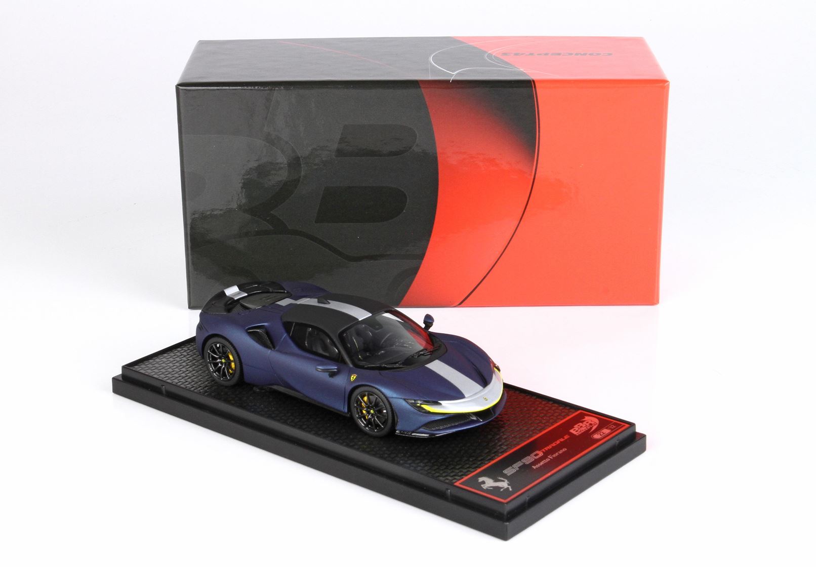 Concept43, la qualità e l'innovazione BBR alla sua massima espressione. Modelli interamente studiati nei laboratori italiani ma assemblati in Cina. Le parti aerodinamiche sono realizzate con utilizzo di particolari in acciaio che permettendo la riduzione perfetta in scala 1/43 con spessori mai visti. Verniciatura e assemblaggio garantito da un BRAND che da più di 25 anni è sinonimo di qualità e perfezione.