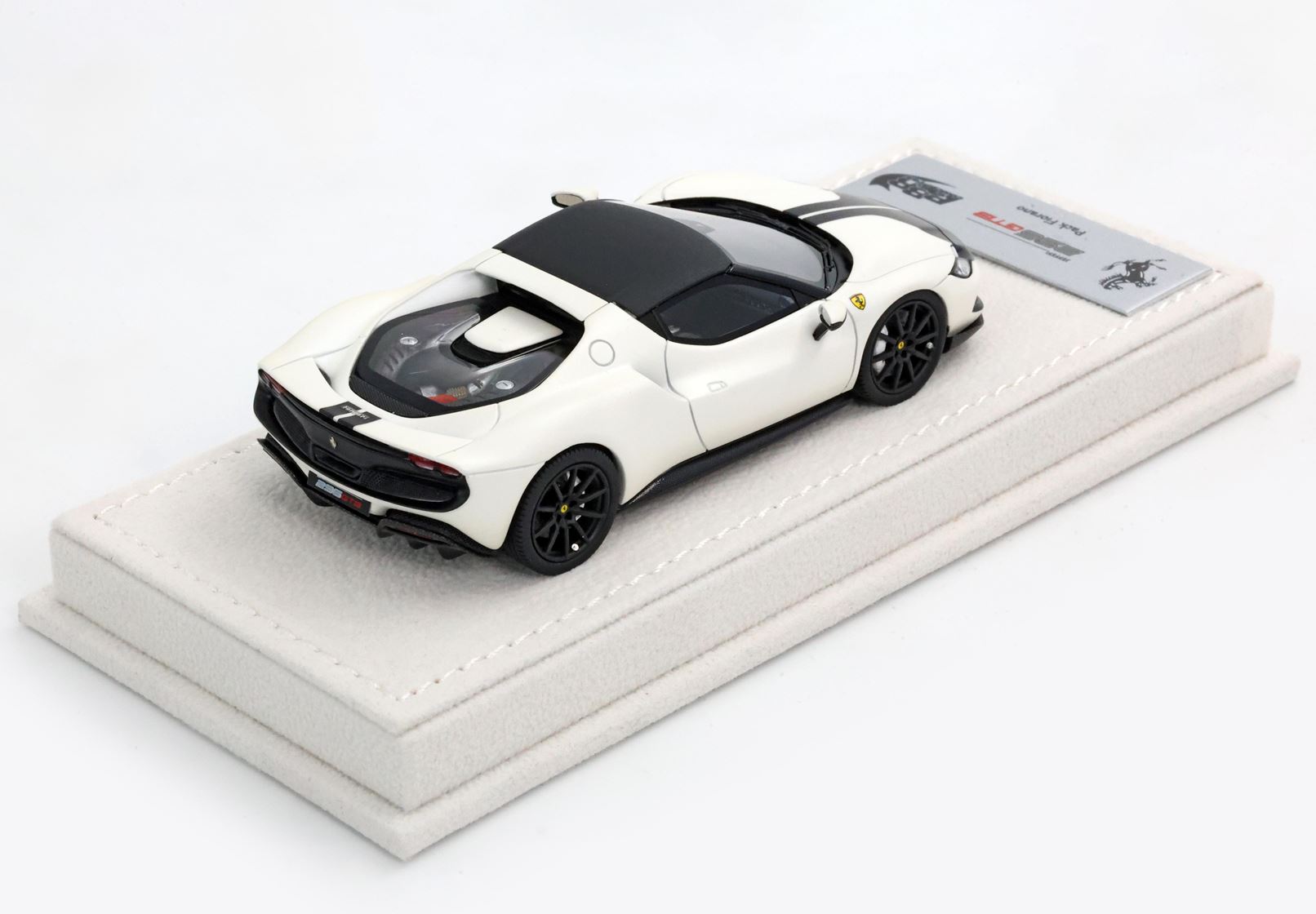 Edizione prodotta da BBR composta da basetta in alcantara bianca e targhetta in metallo. Modello prodotto con questo packaging in pochissimi pezzi limitati.