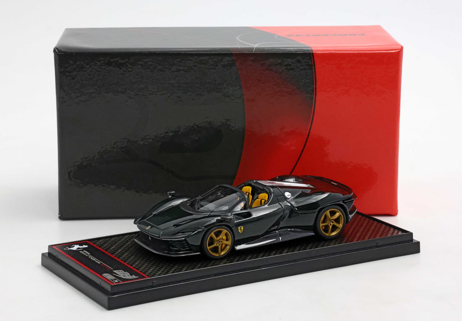 Concept43, la qualità e l'innovazione BBR alla sua massima espressione. Modelli interamente studiati nei laboratori italiani ma assemblati in Cina. Le parti aerodinamiche sono realizzate con utilizzo di particolari in acciaio che permettendo la riduzione perfetta in scala 1/43 con spessori mai visti. Verniciatura e assemblaggio garantito da un BRAND che da più di 25 anni è sinonimo di qualità e perfezione.