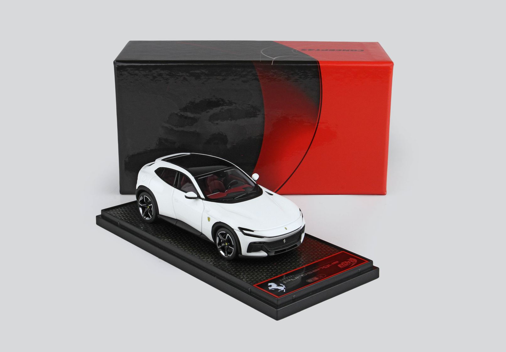 Concept43, la qualità e l'innovazione BBR alla sua massima espressione. Modelli interamente studiati nei laboratori italiani ma assemblati in Cina. Le parti aerodinamiche sono realizzate con utilizzo di particolari in acciaio che permettendo la riduzione perfetta in scala 1/43 con spessori mai visti. Verniciatura e assemblaggio garantito da un BRAND che da più di 25 anni è sinonimo di qualità e perfezione.