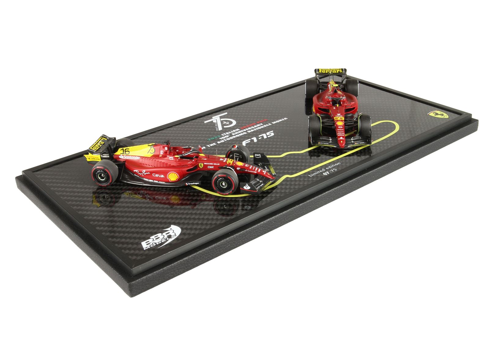 Nell'anno in cui l'Autodromo di Monza ha celebrato i suoi cento anni di storia, ci sono state altre due ricorrenze importanti: i 150 anni della Pirelli e i 75 anni della Scuderia Ferrari. Il team del Cavallino Rampante si è presentato in pista con una speciale livrea sulla F1-75, impreziosita da inserti "Giallo Modena", un richiamo alle origini del mito.